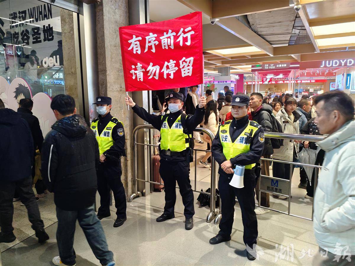 面对大客流,武汉轨道公安也全力开展秩序维护、客流疏导、隐患排查和安检督导等工作,落实“早上岗、严安检、远分流”等措施,保障轨道交通运营安全和乘客出行平安。