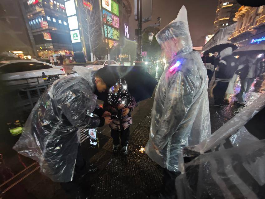 当第三巡逻小组巡逻至江汉四路时,发现一名10岁的小朋友与家人走散,独自在街头焦急地徘徊。经耐心询问,队员得知孩子和母亲从汉阳专程来江汉共度跨年夜,一不留神,被熙熙攘攘的人流冲散,孩子记不清家人的联系电话,无法立即联系。队员詹传学立即上前安抚小朋友的情绪,随后将其带至附近治安岗亭妥善安置。考虑到当晚天气寒冷,队员还贴心为孩子送上热茶和零食,缓解孩子的紧张与不安。