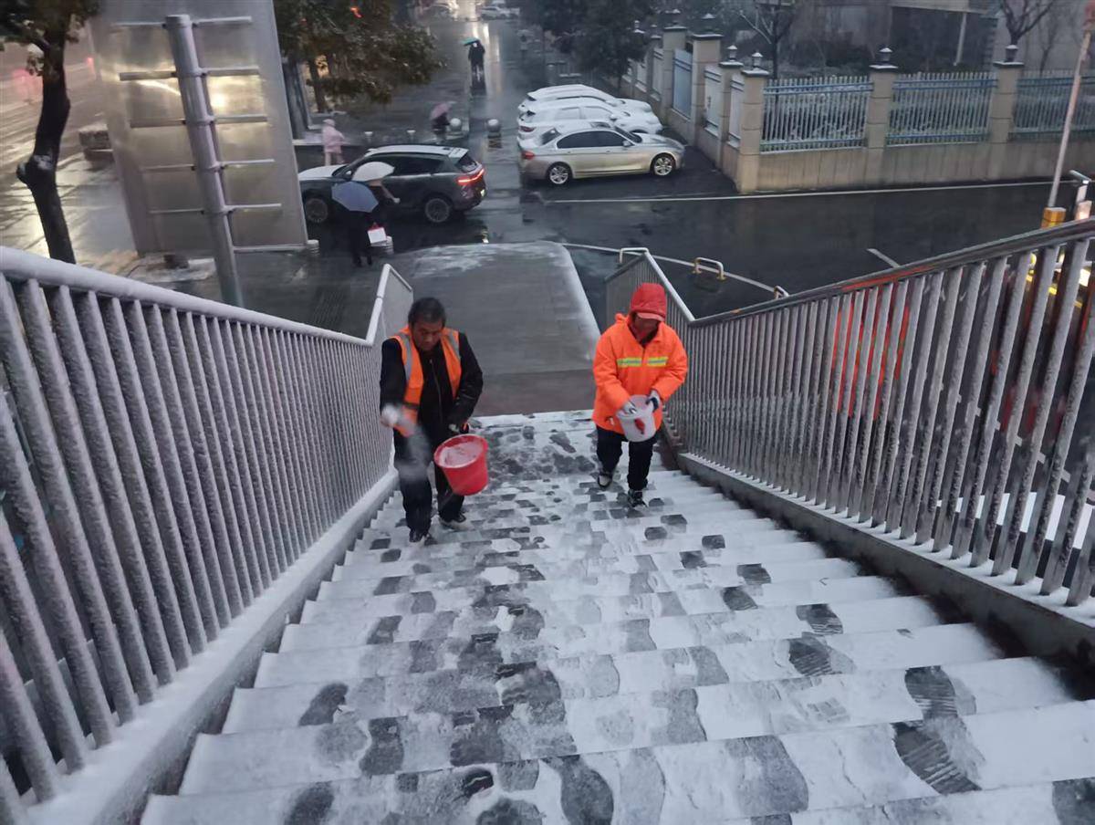 为应对此次降雪天气,确保市民节日出行安全顺畅,自降雪开始至1月1日上午9时,襄阳市、区两级城管部门迅速启动应急预案,全员上岗,连续作业。全市累计出动城管队员、环卫工人5162人次,调度专业除雪车、融雪剂播撒车、铲车、环卫作业车、运雪车等各类作业车辆178台次,科学播撒融雪剂96.1吨,在过街天桥、人行道、公交站台、商场门口等重点易滑区域铺设防滑垫4845块,全力清积雪、保畅通、护安全。