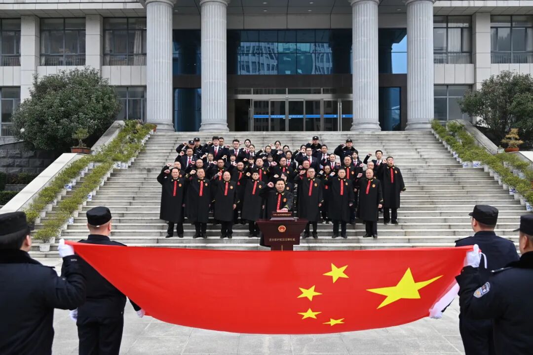 宣誓现场庄严肃穆,党组书记、院长张永海左手抚按《中华人民共和国宪法》,带领全体干警高举右拳,面对国旗,庄严宣誓:“忠于中华人民共和国宪法,维护宪法权威,履行法定职责,忠于祖国、忠于人民,恪尽职守、廉洁奉公,接受人民监督,为建设富强民主文明和谐美丽的社会主义现代化强国努力奋斗!”激昂的誓言响彻全场,既是对宪法的郑重承诺,也是对人民群众的庄严承诺。