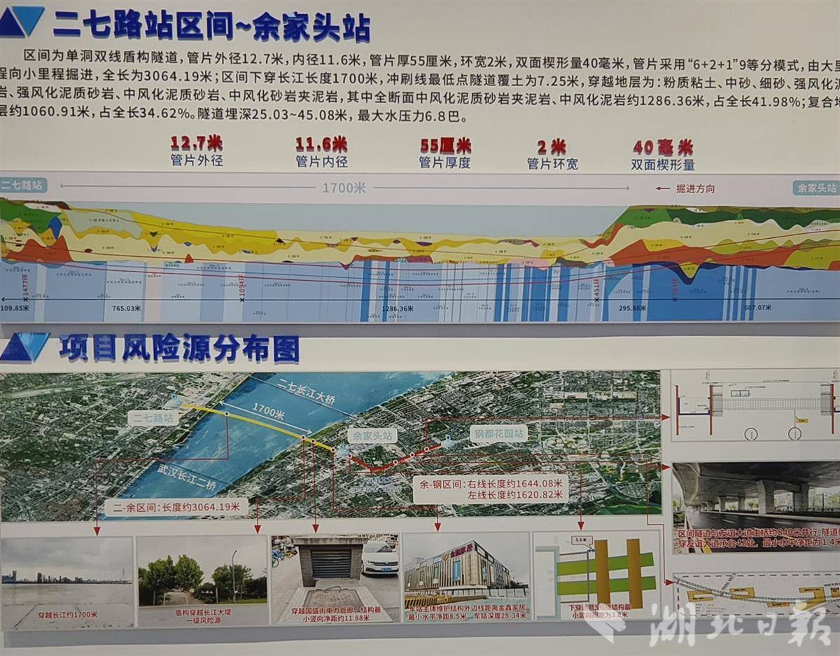 据悉,此次盾构区间从武昌余家头至汉口二七路,为全线重点控制性工程,全长3064米。这条越江隧道内,将放进地铁左线、右线,隧道断面较大,开挖直径也相应扩大,需要更大的盾构机。
