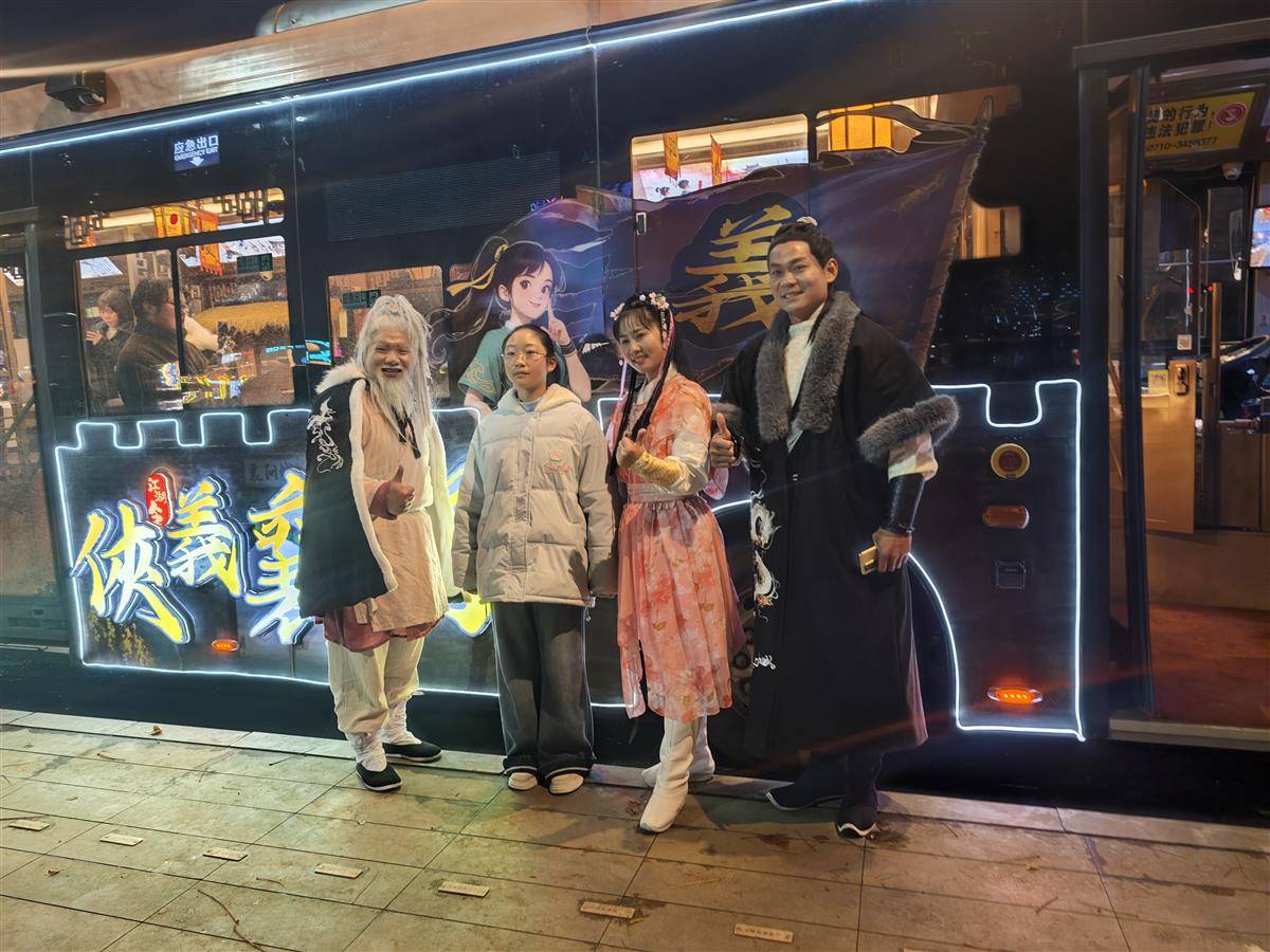 1月1日晚,由郭靖、黄蓉、洪七公等武侠人物驾驶的侠义主题公交,沿吾悦广场至汉唐大道四季青专线巡游,串联起东街、长虹路民发广场、万达广场等12个核心商圈与文旅地标站点。1月2日至3日下午,3辆侠义公交还将在诸葛亮广场集中停靠,供游客打卡体验。