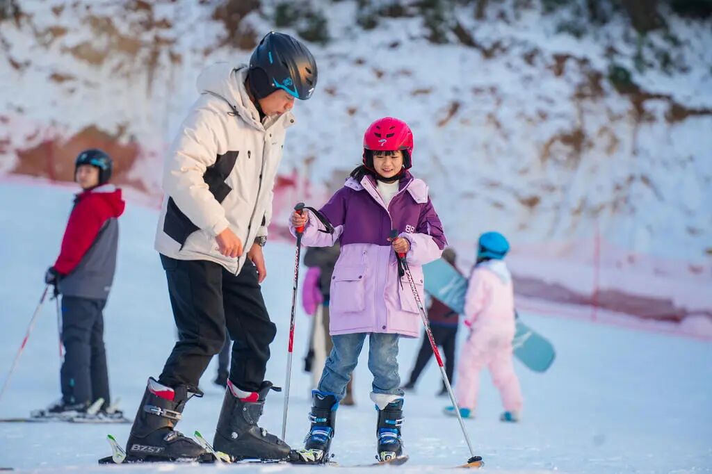 滑雪场上划过雪道的弧线