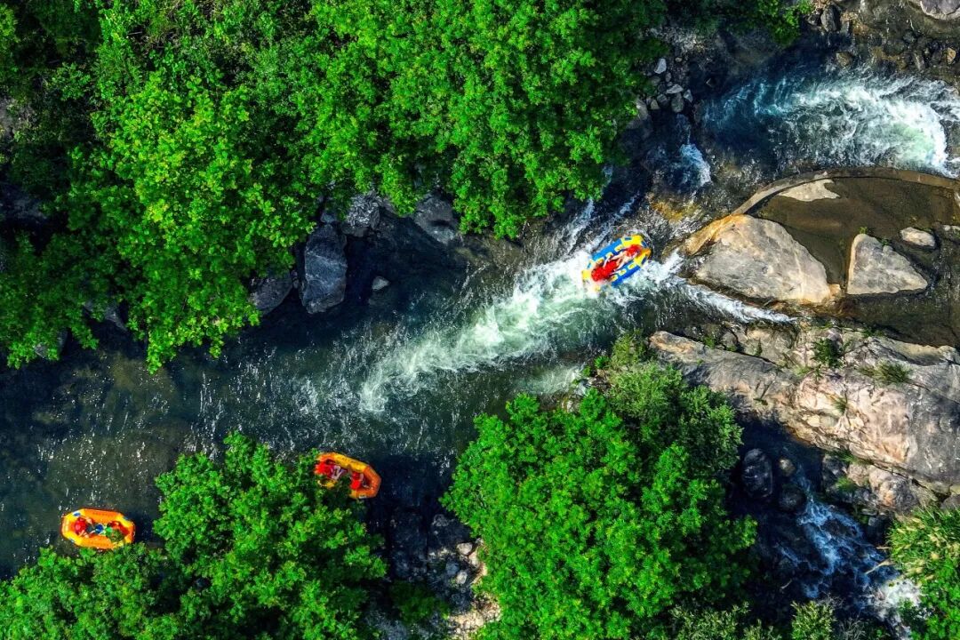 而漂流河道里溅起的浪花