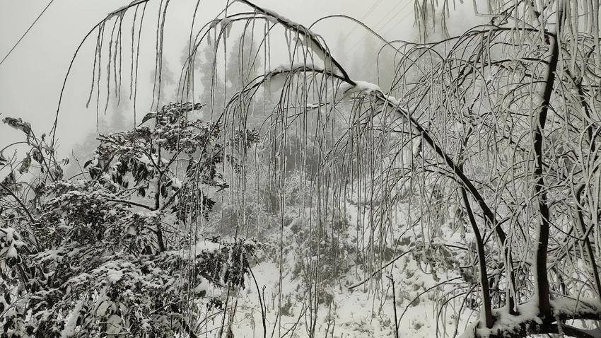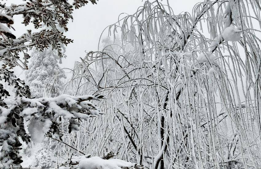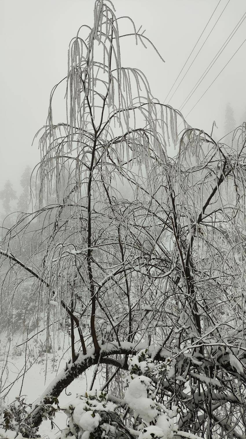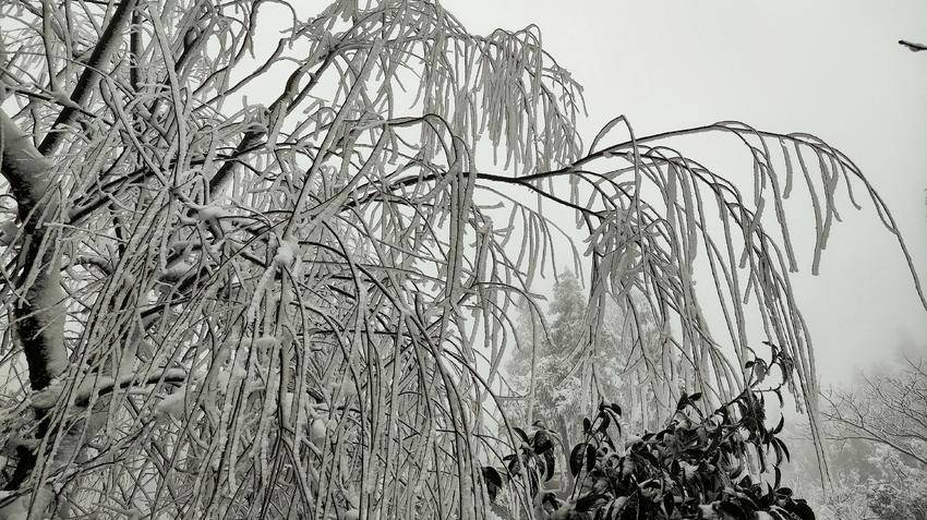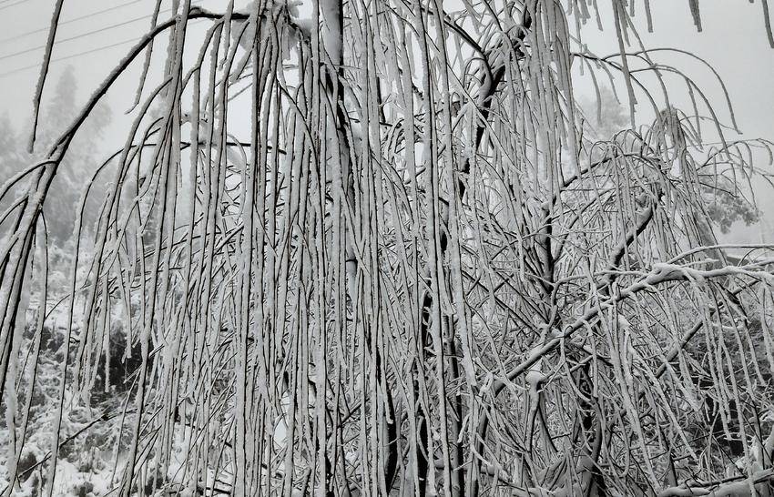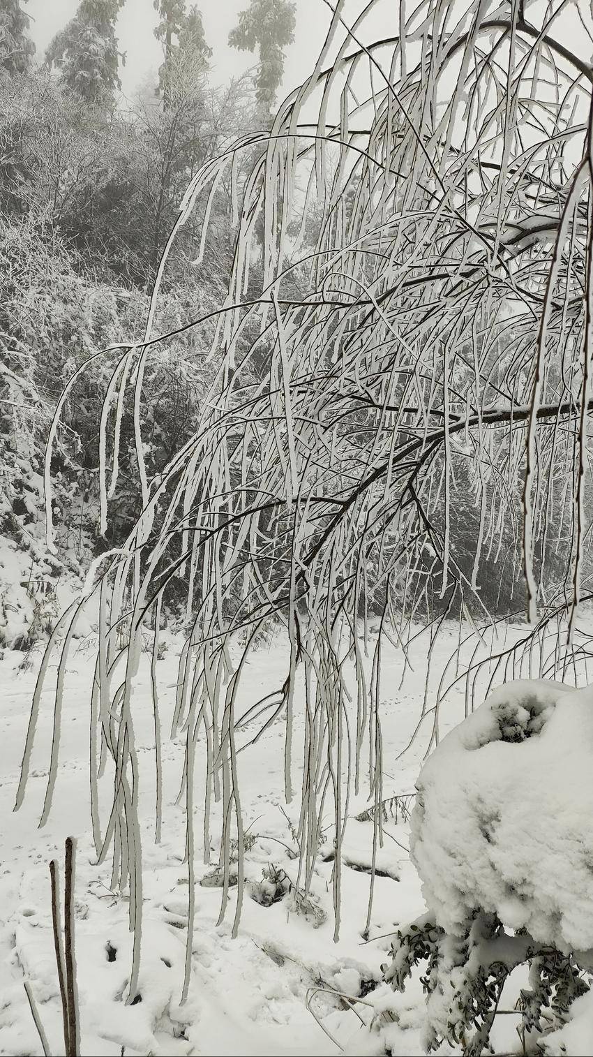 往日柔丝万千的柳枝,此刻已换上雪白的冬装,仿佛是天地间最灵动的白玉雕琢。每一丝枝条都缀满蓬松的雪绒,千枝万条,织成一帘帘白色玉帘。风雪里,柳枝轻轻摇曳,似玉人起舞。