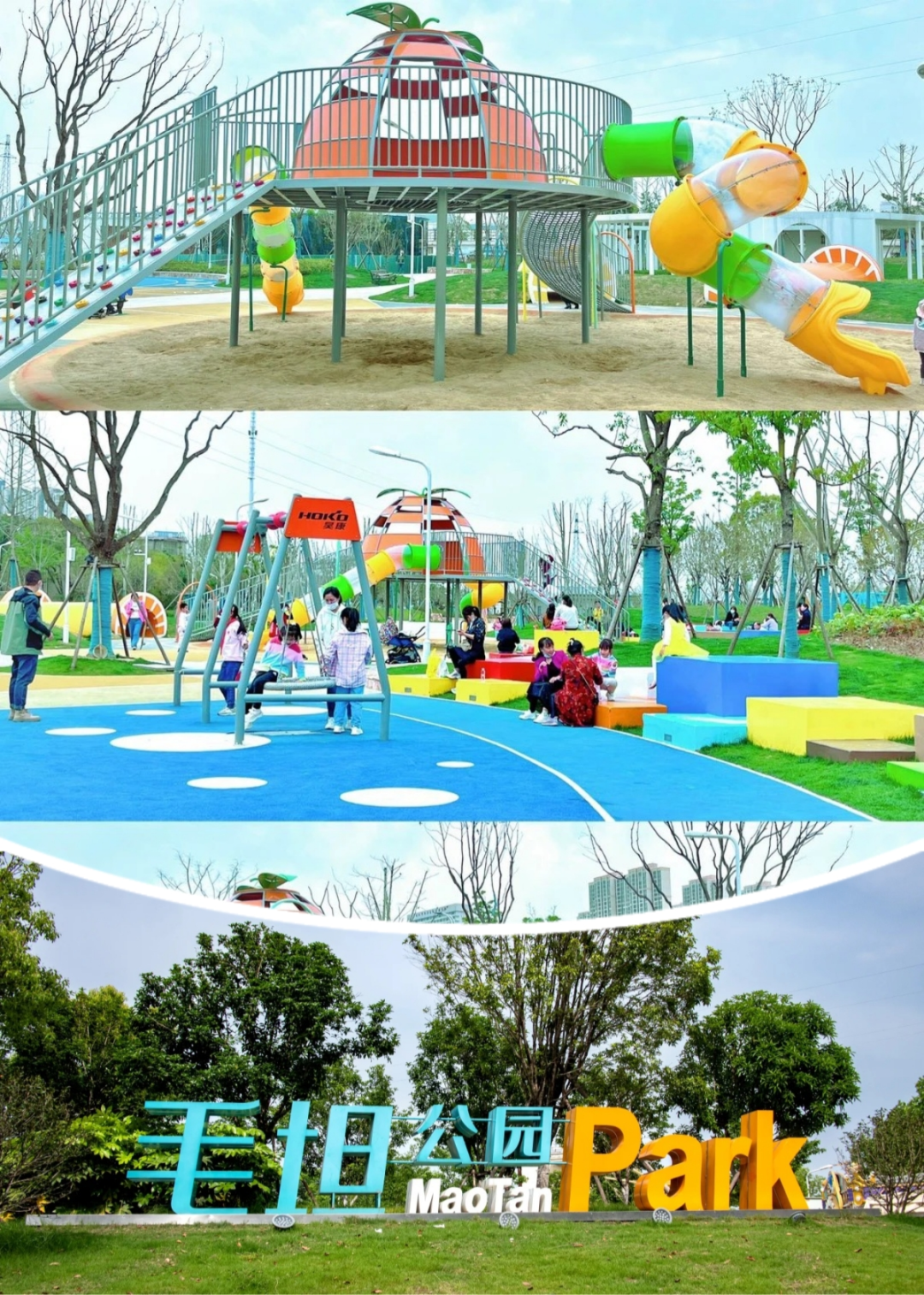 位于杨泗港快速路南侧、烽火路以东的毛坦公园,是洪山区首个双拥主题公园,近两公里的绿色条带将花卉展示区、乐活运动区、生态休闲区巧妙串联。其中,白沙三路至白沙四路区间的儿童乐园,五彩缤纷的塑胶跑道上,滑滑梯、跷跷板、秋千等设施一应俱全,孩子们可以尽情奔跑嬉戏。公园内随处可见的拥军元素,还能让家长借机开展爱国主义亲子教育,让游玩更具意义。