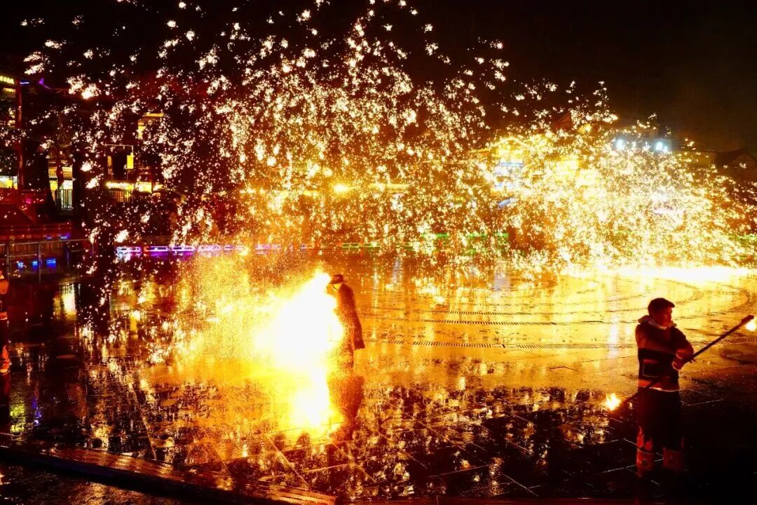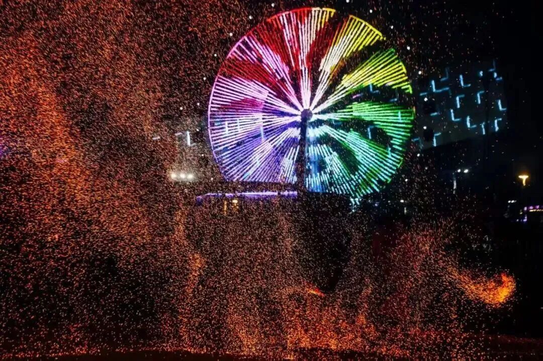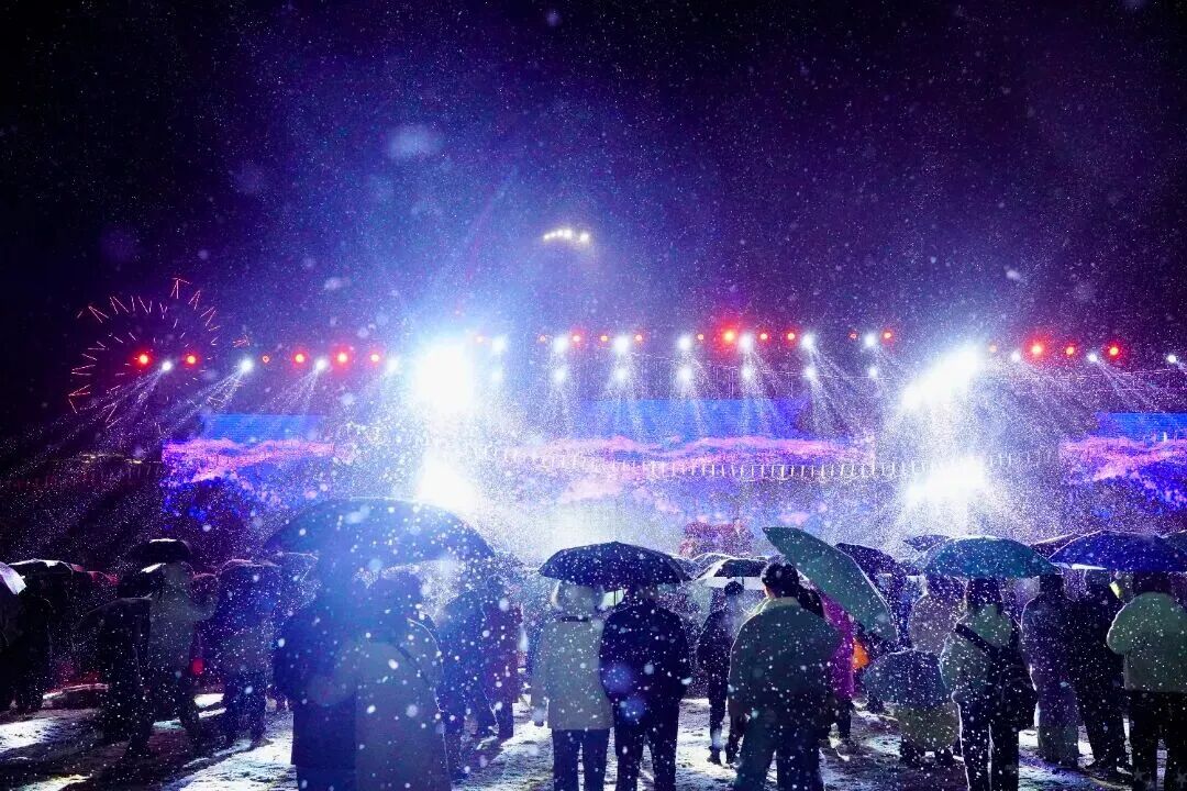当晚,“非遗打铁花”“浪漫飘雪计划”“篝火晚会”等环节接连上演,铁水泼洒成星雨,人工降雪营造童话世界,现场成为光影与欢呼的海洋。