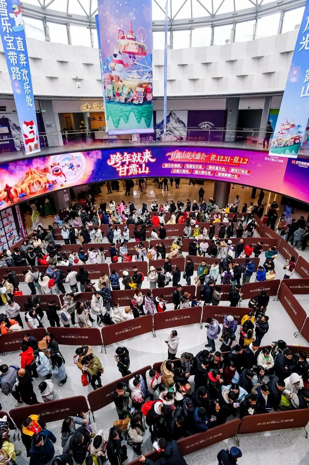 2025年12月31日晚,甘露山文创城便已“热”起来。作为全市九大跨年地标之一,其西嬉里摩天轮与江汉关、黄鹤楼同步点亮,进行跨年倒计时。