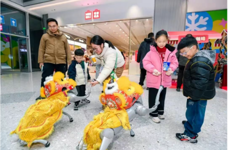 亲子科技:“VR雪球大作战”“无人机冰球”“机器狗巡游”吸引众多家庭,编程舞狮的机器狗更是圈粉无数。
