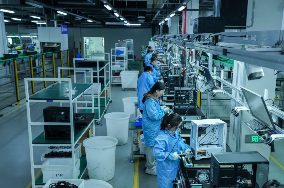 攀升科技园的电商直播基地里,同样一派繁忙景象。直播间内灯火通明,主播们正对着镜头细致拆解产品核心参数,订单提示声此起彼伏。“订单量很稳定,我们正在加速生产。”跟随车间负责人,记者在生产车间看到,机箱、显卡等部件在传送带上整齐码放,工人们穿梭其间,熟练完成主机装配、接口调试、性能检测等工序,整条生产线高效运转、有条不紊。