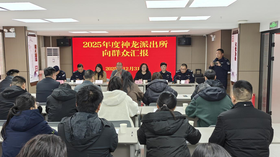 湖北日报讯(通讯员付宇佳)为拉近警民距离、凝聚共治合力,12月31日,武汉经开区神龙派出所联合翡翠玖玺社区召开2025年度向群众汇报会。辖区居民代表、商户负责人、社区工作人员等30余人齐聚一堂,听取年度警务工作总结,共话社区平安建设,现场氛围热烈融洽。