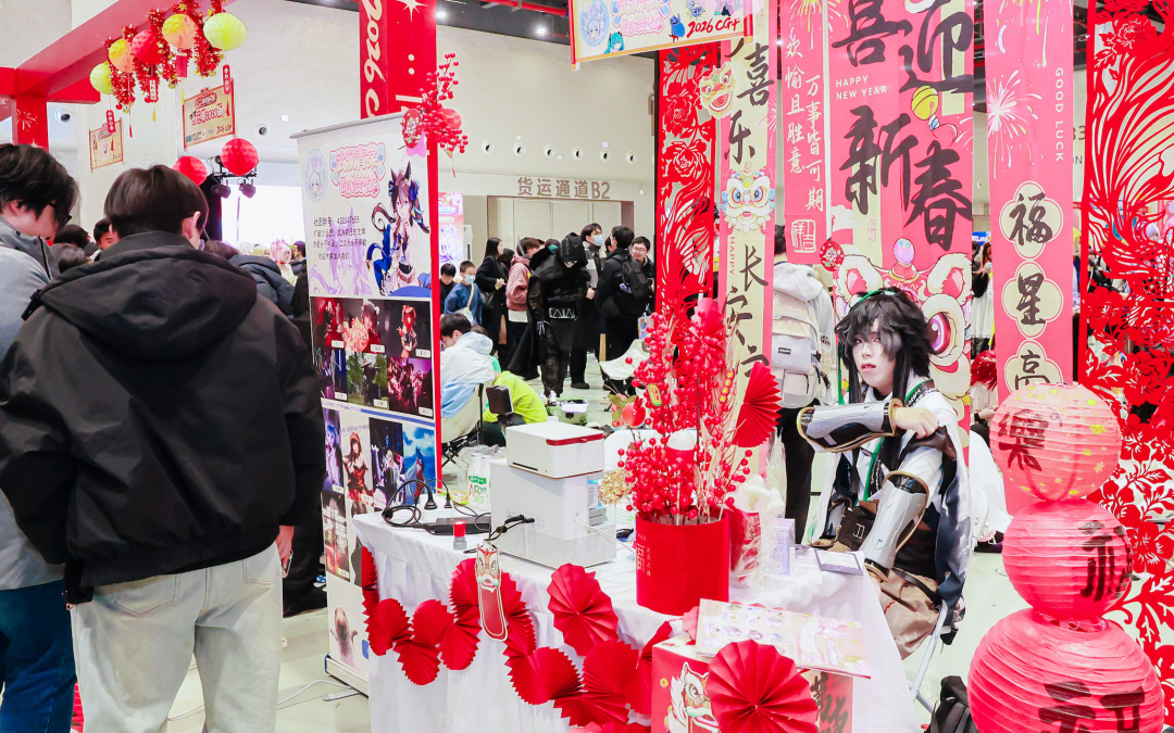 展区面积超2万平方米,融合动漫内容与新春民俗元素,打造了古风雅韵、诡牌红馆、复古科技等十八大主题摄影棚景。为期两天的活动累计接待观众超4万人次沉浸式打卡体验。