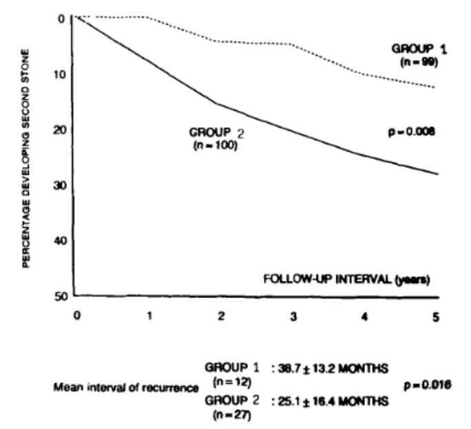 另一项追踪调查5年的研究则发现,即使是已患特发性肾钙结石的患者,通过饮水干预使其每日尿量达到2升时,结石复发率可降低一半。