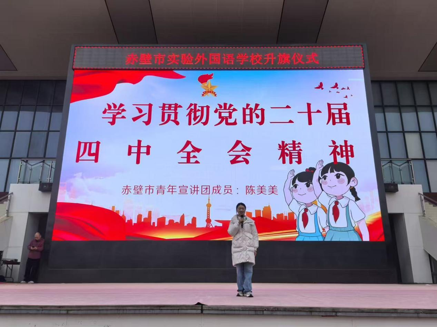 12月8日清晨,赤壁市第一中学升旗仪式现场庄严肃穆。面对千余名师生,赤壁团市委青年宣讲团成员陈美美将宏大的政策主题融入日常教育,用富有感染力的语言阐述个人奋斗与国家发展的紧密联系。高二学生李静听后深有感触:“这种在升旗仪式上的宣讲特别有仪式感,让人心潮澎湃,真切感受到肩上的责任。”