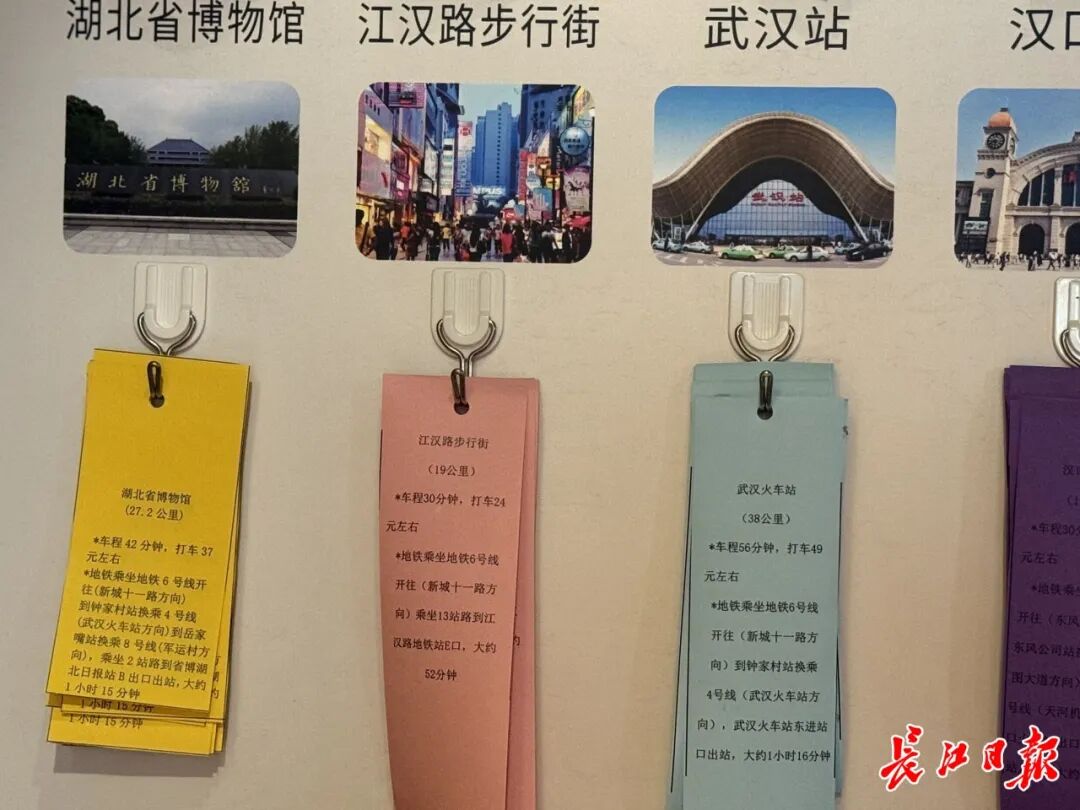12月31日,王朝阳正式入住武汉青年人才之家·车谷驿站卓玺酒店,一楼大厅里那面精心制作的引导牌吸引了他的目光。上面不仅列出了武汉城市地标,还细化了交通选择,例如前往江汉路步行街,车程约30分钟、打车费用约24元,或乘坐地铁6号线经13站、约52分钟可达。田鹏告诉记者,这是2025年服务升级中新增的一项暖心举措,目的是“让青年一下来就有方向感,更快地融入武汉生活”。