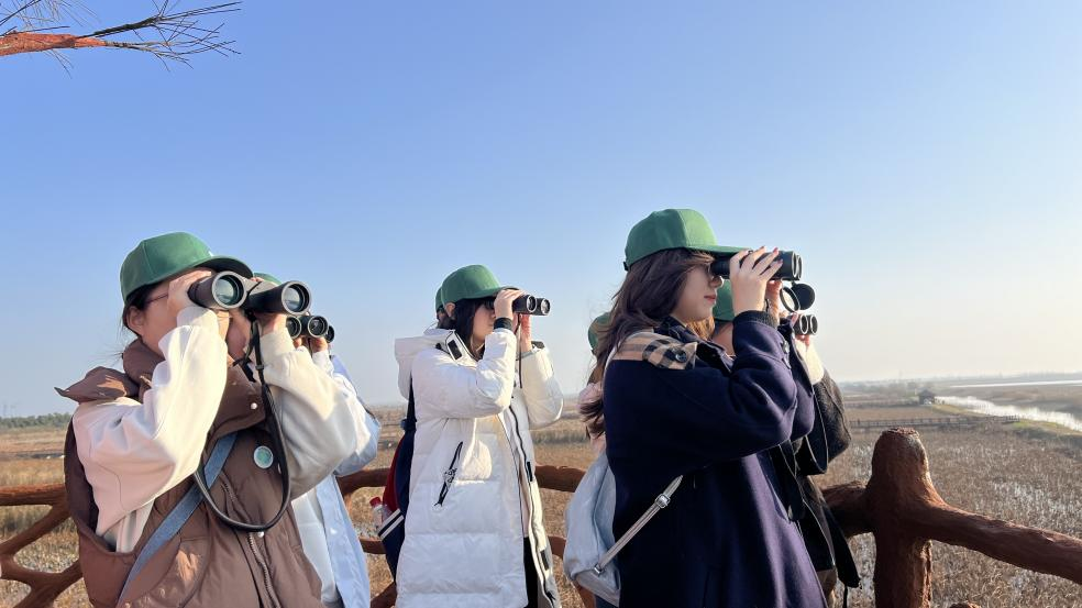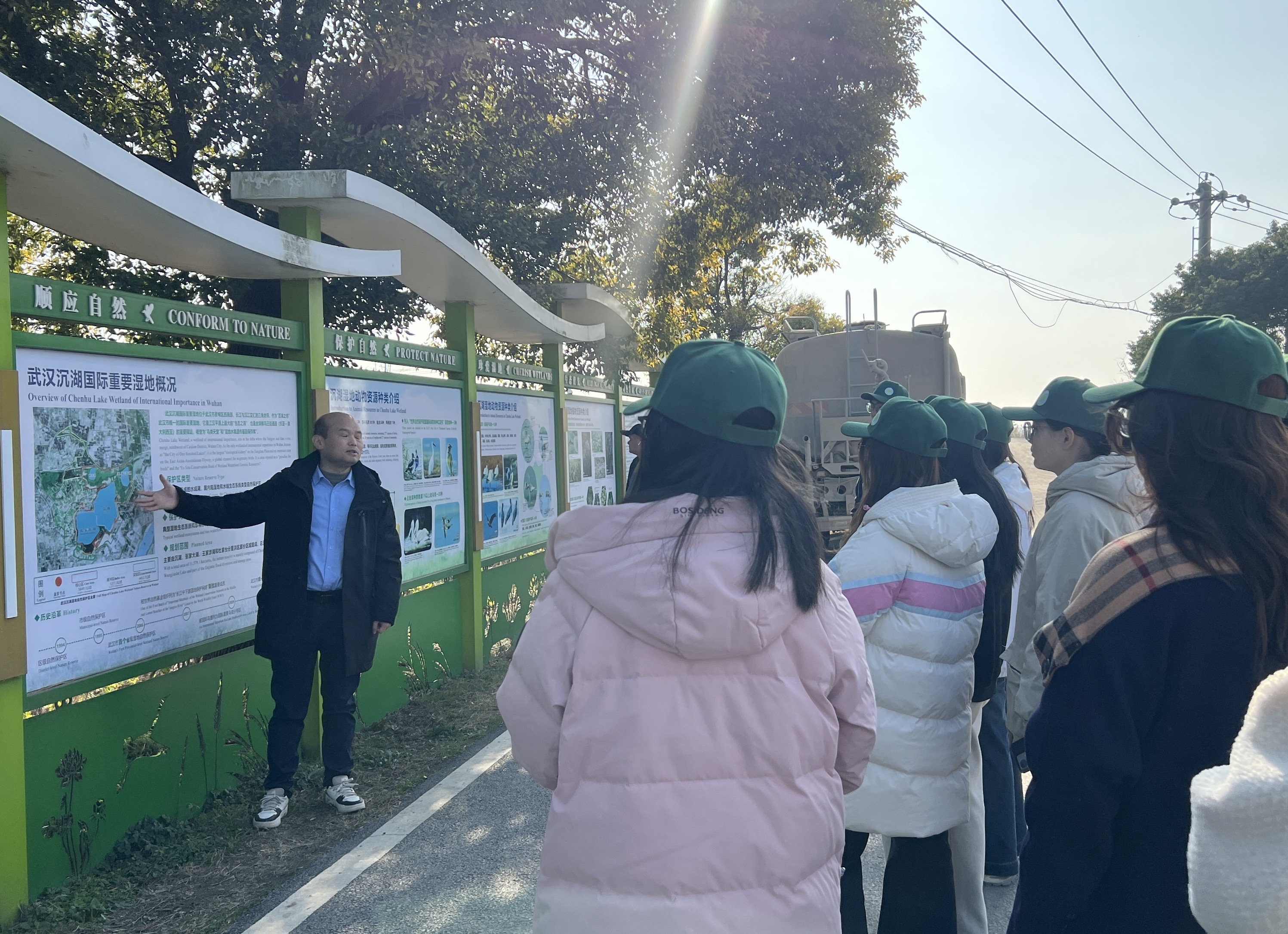 活动中,华中农大资环学院环境科学专业校友、沉湖湿地保护工程师冯江为师生系统讲解了沉湖湿地的生态特点、候鸟栖息规律及保护进展。志愿者通过发放宣传册、现场讲解等方式,向游客传递湿地保护理念与法规。观鸟环节中,师生相继观测到小天鹅、白鹤、东方白鹳等珍稀鸟类,来自环境工程2301班的李玉洁同学感慨:“亲眼看到这些珍禽在湿地安然栖息,我深深体会到湿地保护工作的价值,也更坚定了投身环保的责任。”