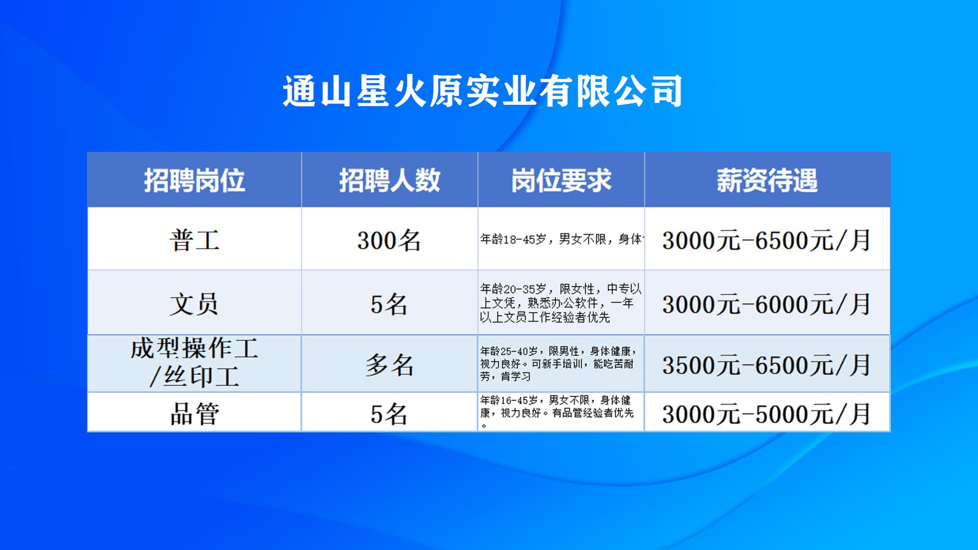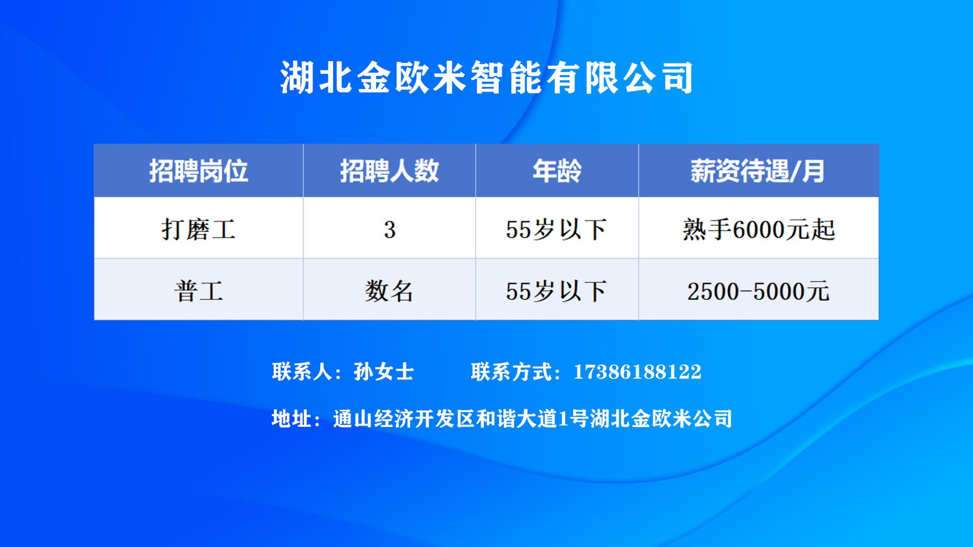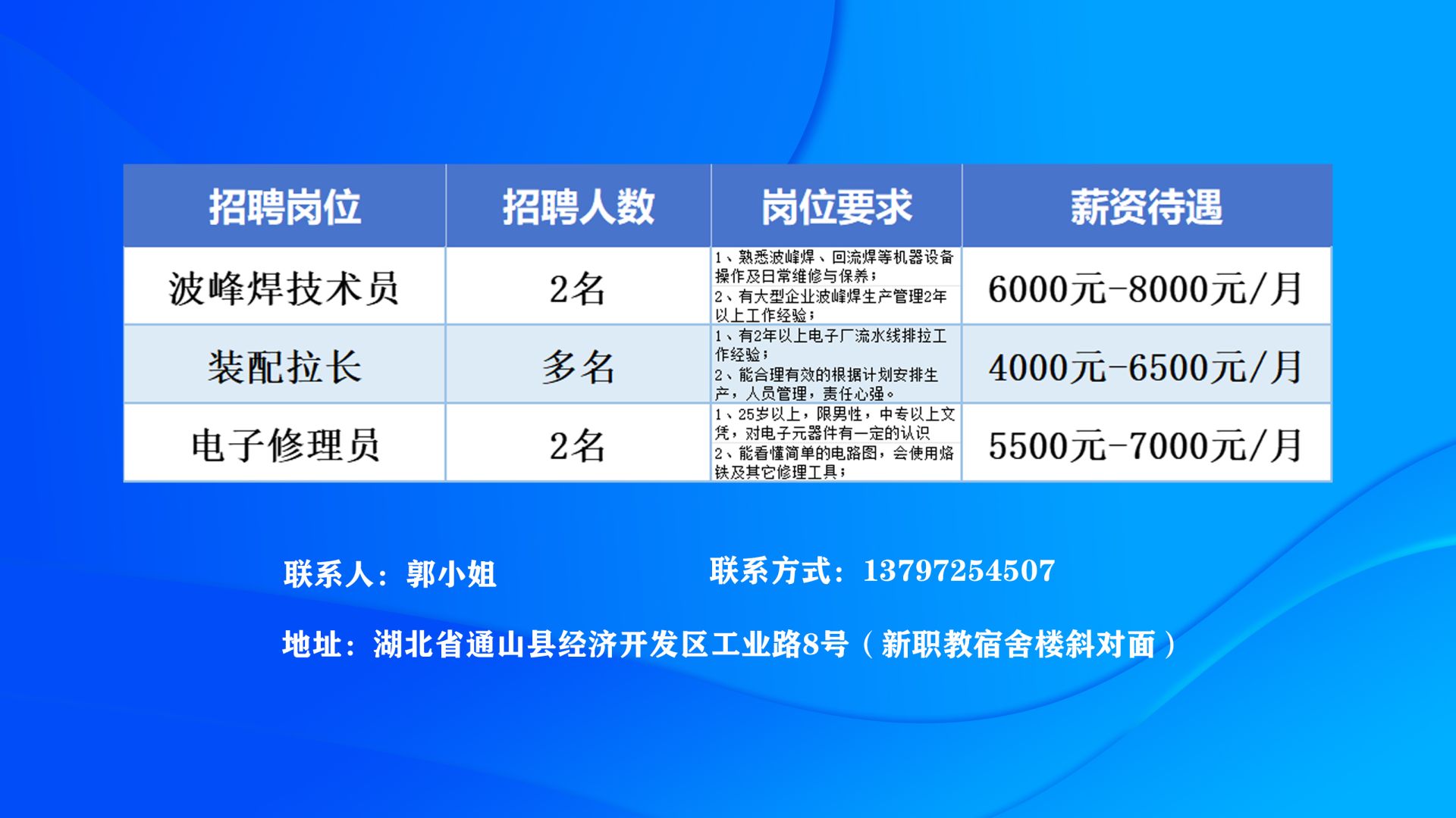 湖北东琳科技有限公司于2022年3月成立,是通山县招商引资进入的重点企业,主要经营工艺品,玻璃水晶制造、货物等进出业务。现因公司扩展需要急招以下工作人员。