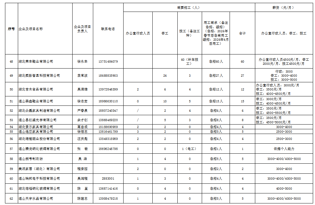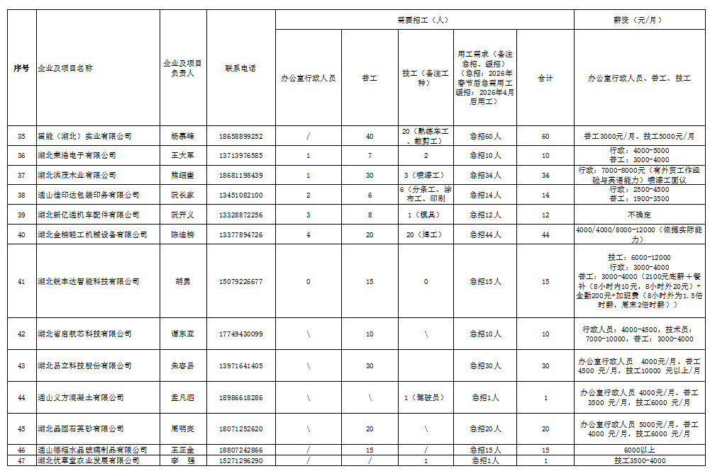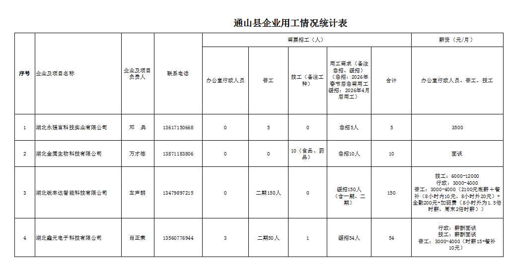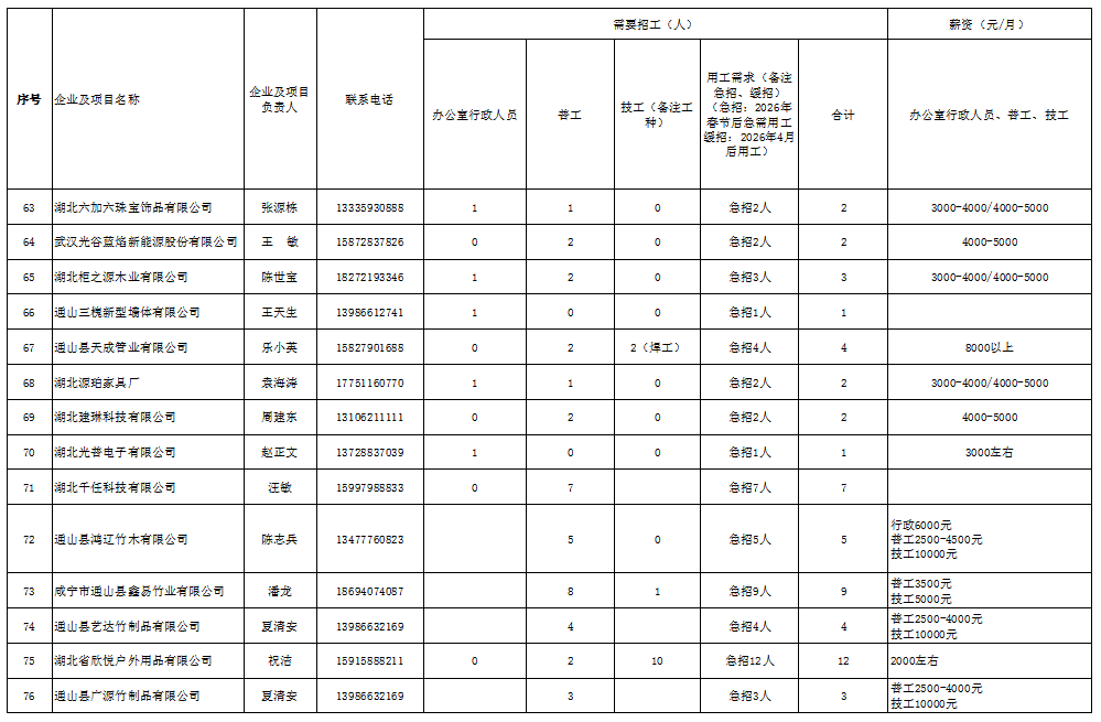 通山县人社局和县融媒体中心精心汇总,为您呈现全县重点企业用工需求。2026个优质岗位虚位以待,机遇汇聚,选择多样。无论您追寻怎样的职业舞台,这里总有一个位置,与您的才华匹配,同您的梦想相拥。好工作不等人,您的心仪之选,正等您前来。