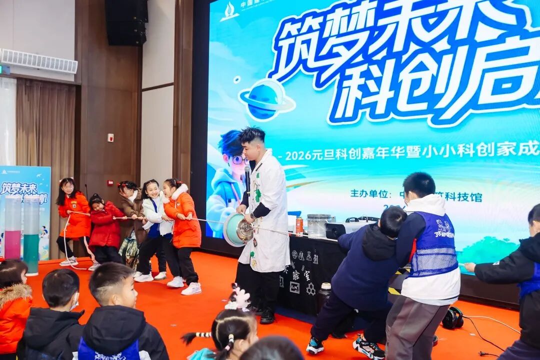 能扫雷、可看电视的“硬核”坦克车,会做家务的“暖心”扫地机器人,可自动计分的移动投篮机,考验反应力的编程游戏“夹缝求生”……在2026年元旦科创嘉年华暨小小科创家成果展演活动现场,近30位小创客登上舞台,围绕“筑梦未来 科创启航”主题,展示了他们精心准备的科创作品。