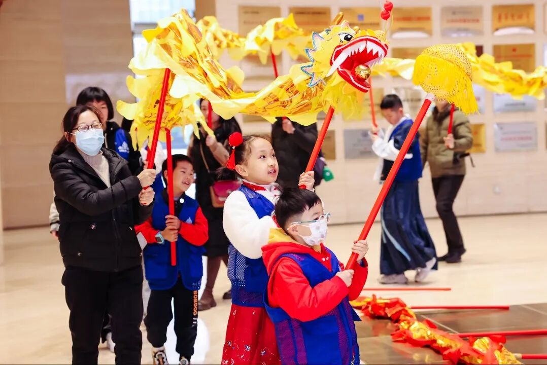 在“元旦亲子趣味派对”现场,“舞龙祈福”“展厅寻‘马’”“风铃手作”“非遗拓印”“灯笼添彩”五大主题活动依次上演,为亲子家庭带来了一场沉浸式的新年文化之旅。