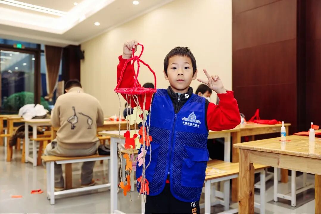 小朋友在前,手持龙身木柄,家长在后,稳稳托举,一条锦绣彩龙在亲子协作下腾跃翻飞。风铃手作区,家长和孩子一齐握住剪刀,沿着铅笔描绘的线条,小心翼翼地裁剪着纸上的小马驹,制作成随风起舞的风铃。活动现场,文化与童心碰撞,年味满满。