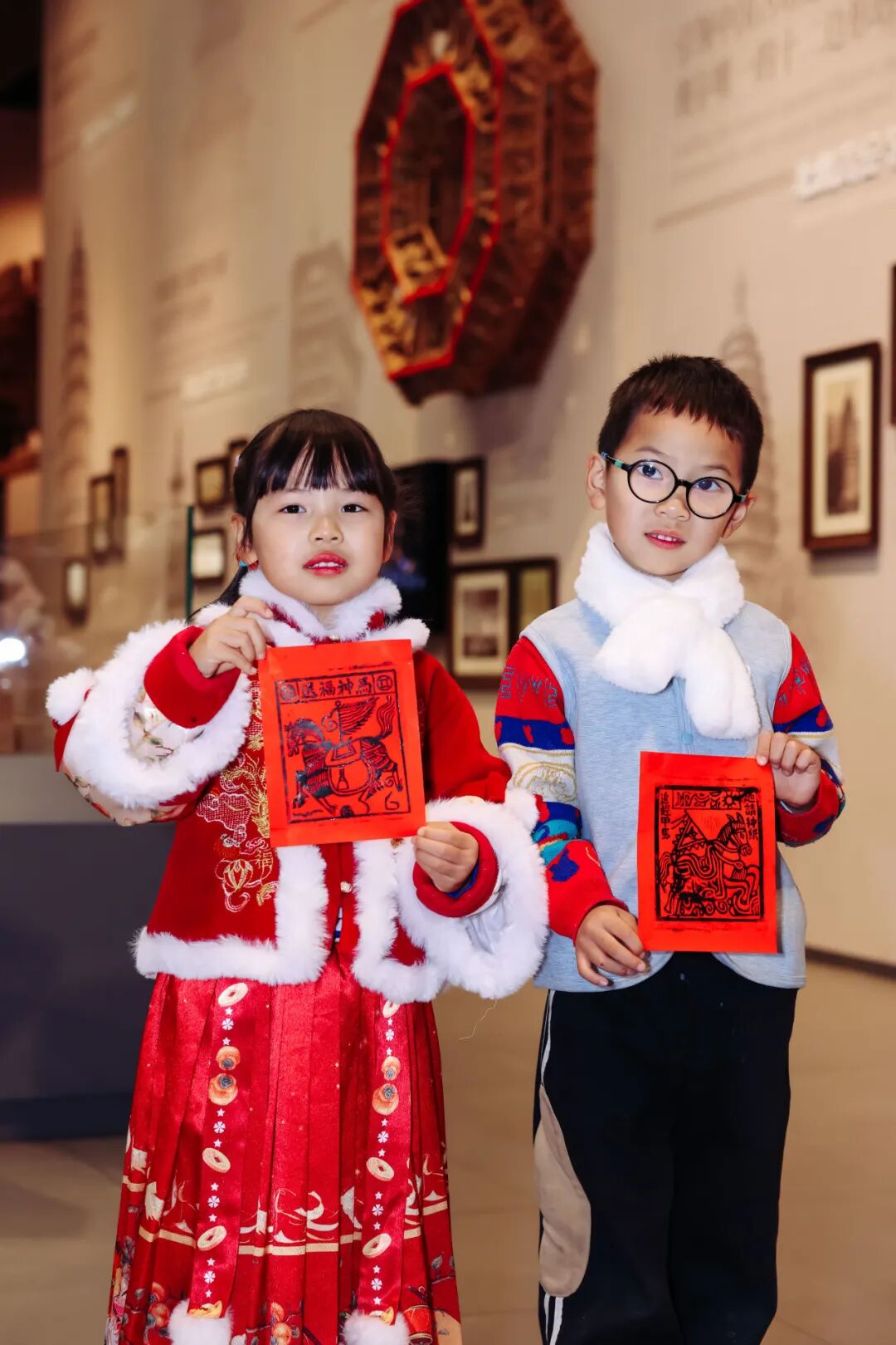 镜头前,他们手持亲手拓印的马年年画与古建模型合影留念,纯真的笑容与古建的沉静相映成趣。这场衣和筑的对话,在他们心中悄然播下文化传承的种子。