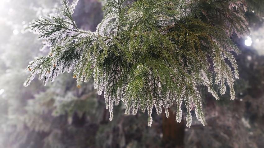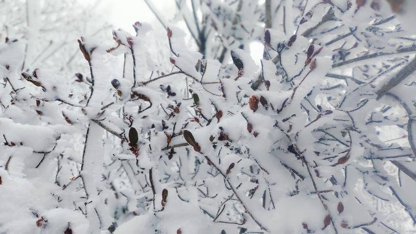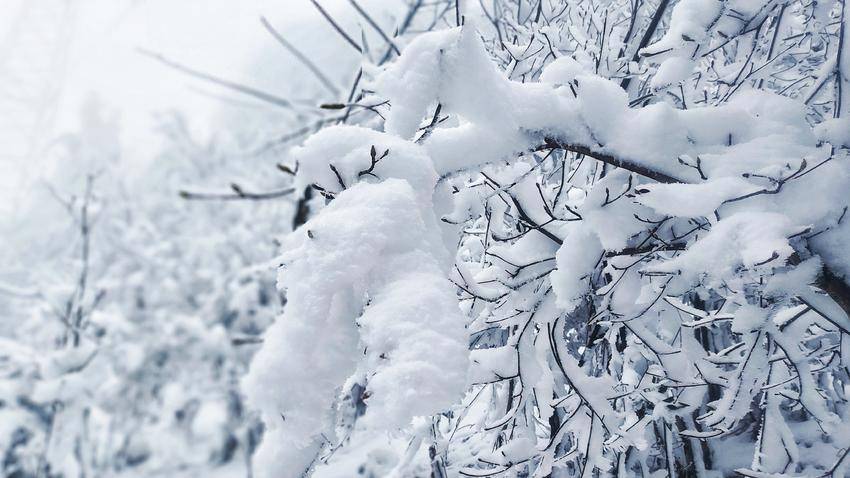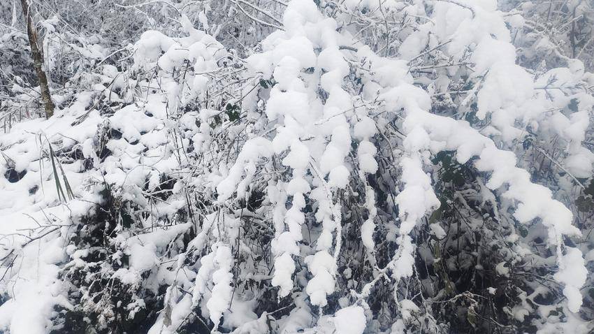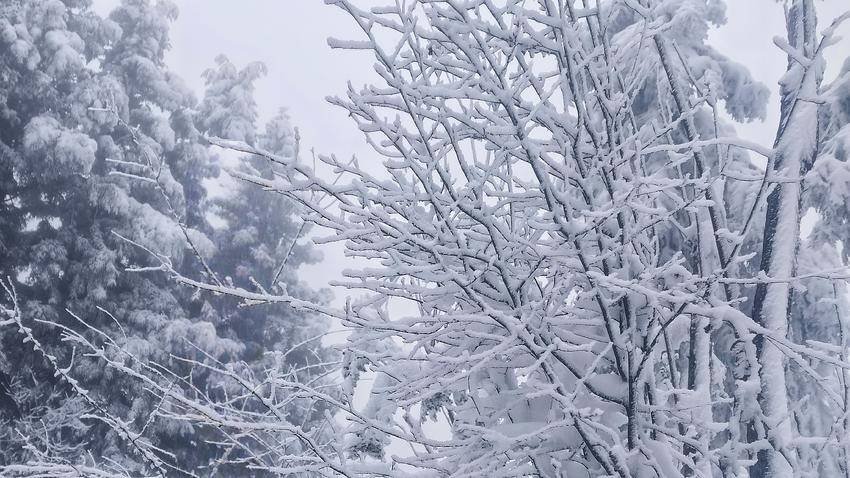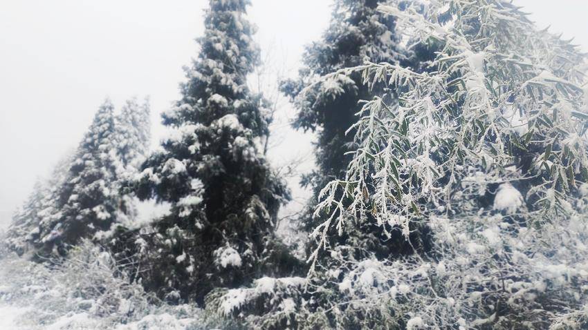 极目远眺,“千峰裹素白,万树梨花开”。山岭、丛林,积雪成云,漫山的琼枝玉树,犹如走进白玉宫殿与珊瑚世界。