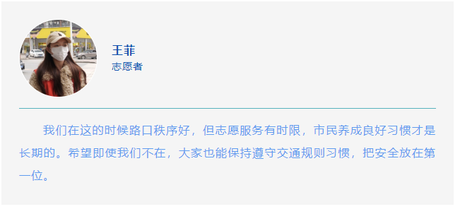 常态化的服务模式培育了良好的出行习惯。如今在志愿服务的路口,行人普遍能做到自觉等候信号灯、主动走在人行横道区域内。