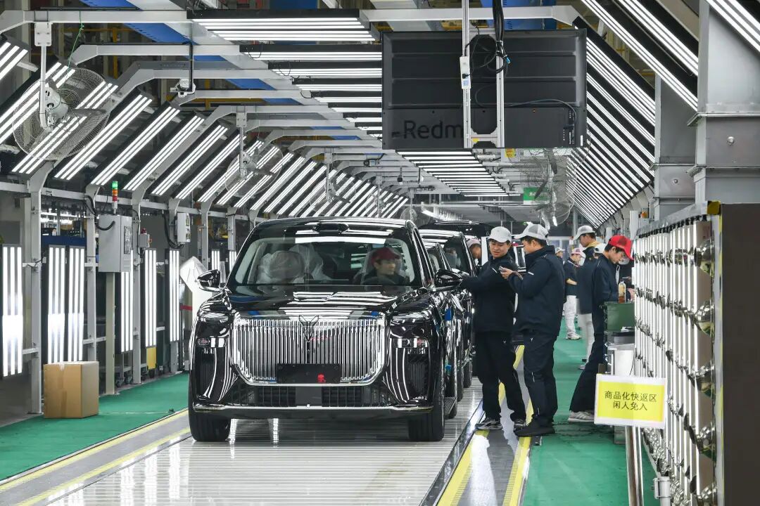 机械臂抬起,焊花在空中闪现,车身沿着总装线缓缓前行。电子显示屏上的数字不停地跳动,一辆辆新车接连驶下产线。
