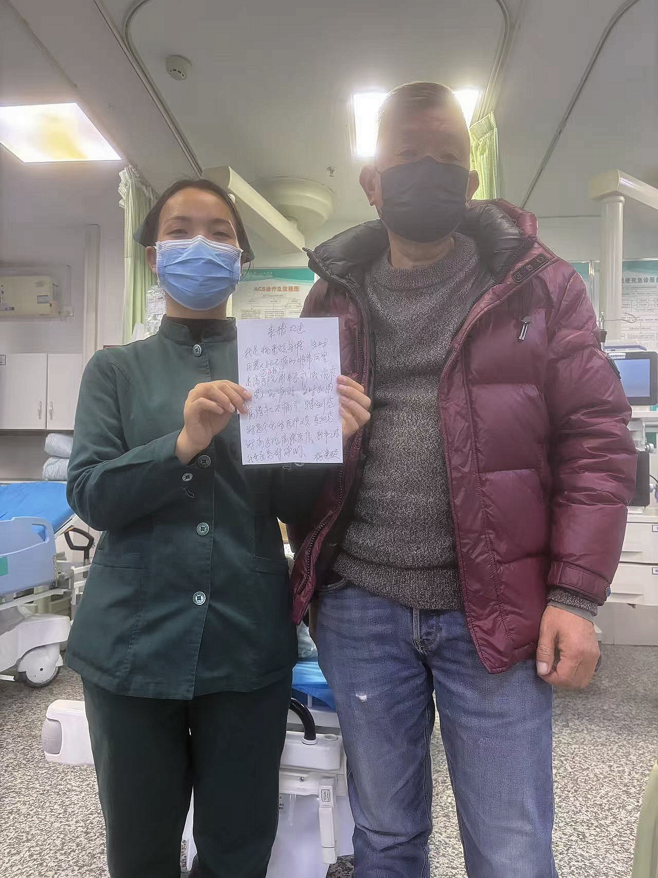从极致痛苦到骤然放松的转变,让杨女士和家人既意外又感激。不善言辞的家属,选择用亲笔书写感谢信的方式,来表达对高雅静护士精湛技艺与仁爱之心的最高褒奖。“谢谢高护士,你那双手,带来了奇迹。”家属在信中写道。