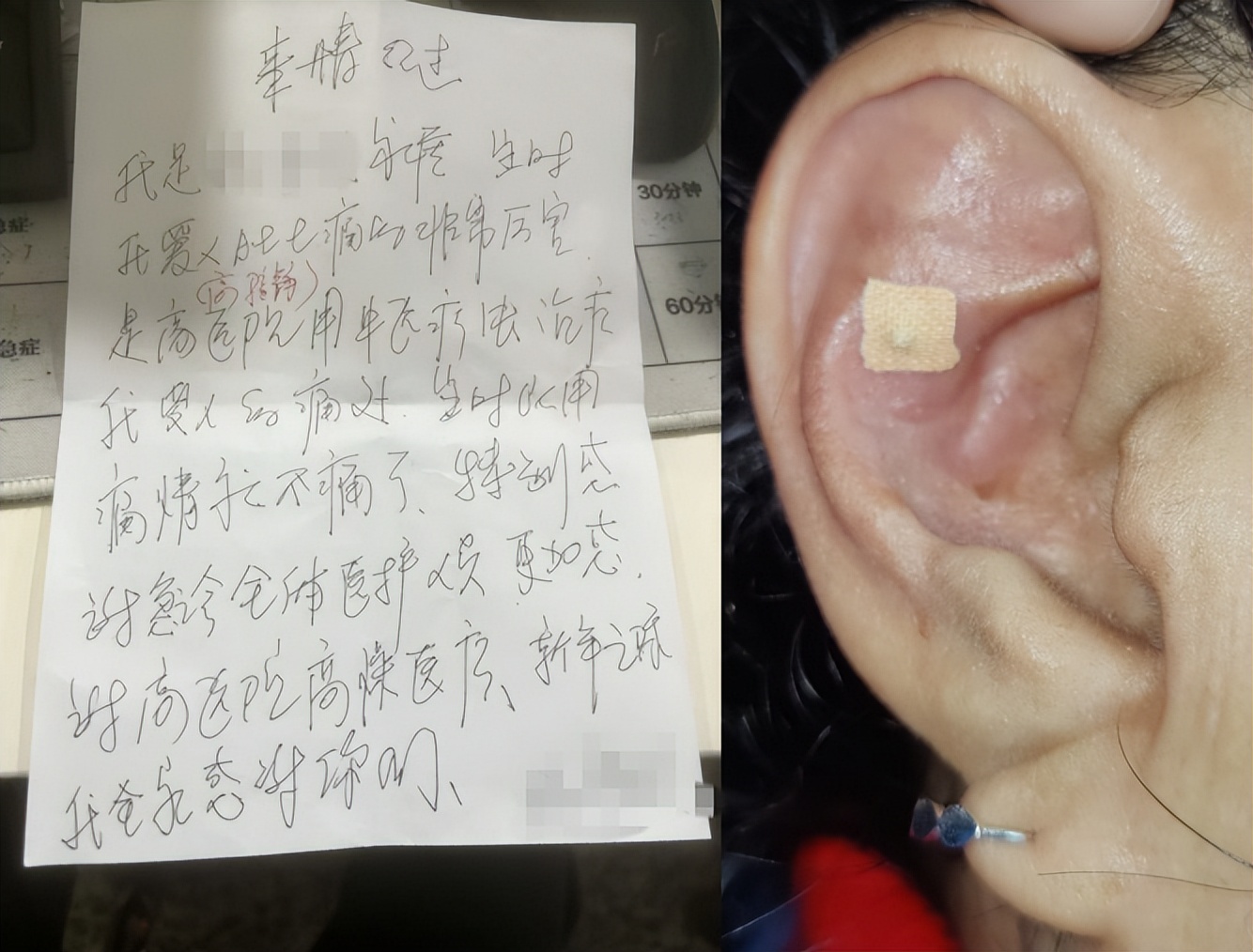 大约三五分钟后,杨女士身上的剧痛便迅速消散。随后,高雅静叮嘱杨女士,疼痛时可自行按压此穴,每日多次、每次1-2分钟以巩固疗效,同时注意保持耳部干燥,避免胶布脱落。
