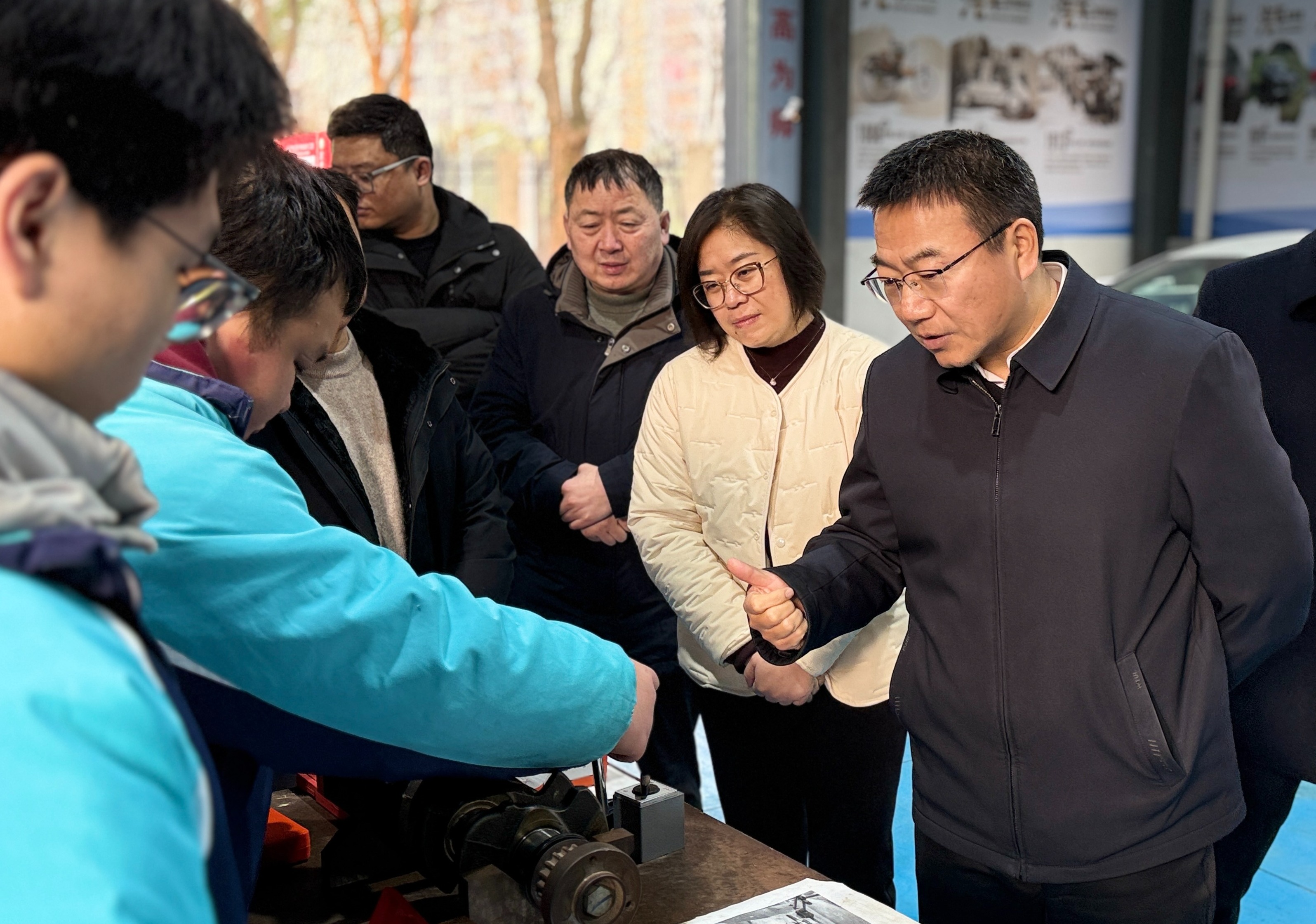 在黄石市第一高级技工学校,卢川重点考察智能制造实训中心、新能源汽车实训中心等特色教学平台,对学校依托大师工作室培育技能人才的做法给予关注。