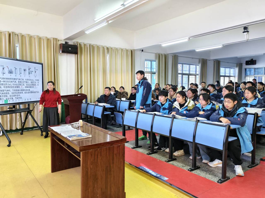 湖北日报客户端讯(通讯员周一川、籍书怡)为深入探讨初三化学复习的有效路径,优化复习课堂结构,提升学生学科核心素养,1月6日,谷城县初中化学复习研讨会在筑阳中学阶梯教室举行。