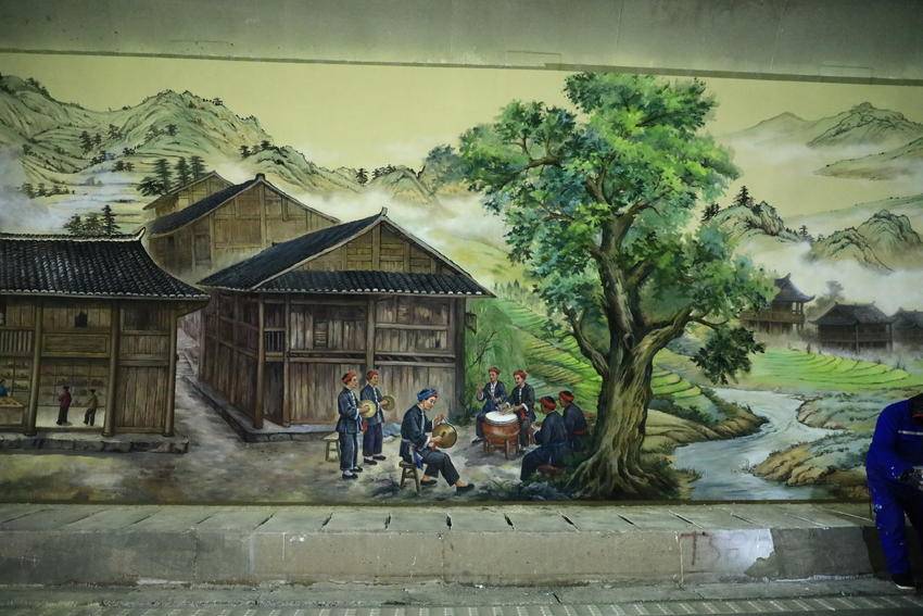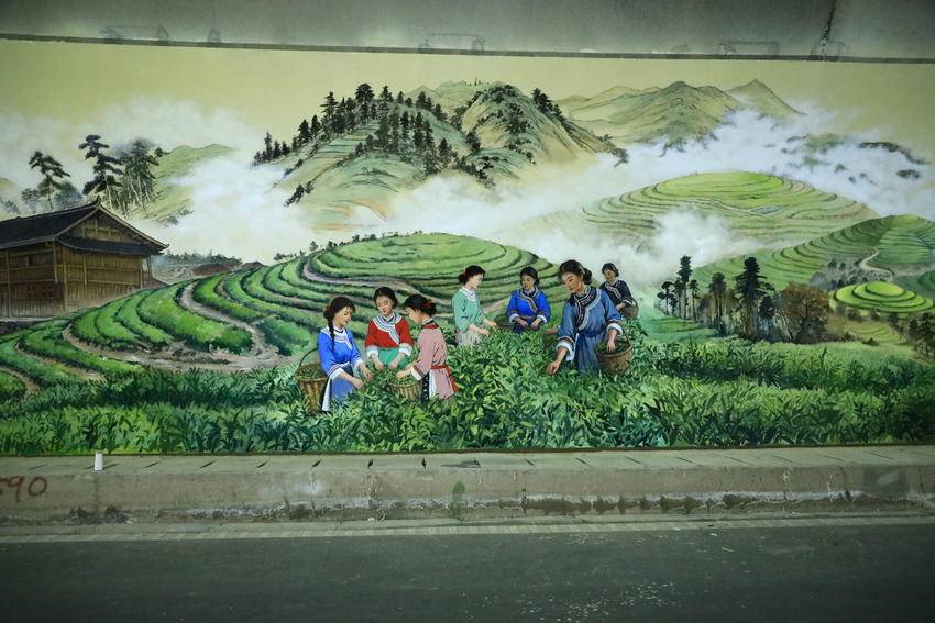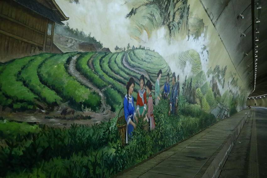 诗画鹤峰:满山红墜道内绘制大型壁画