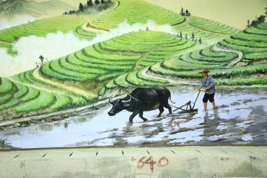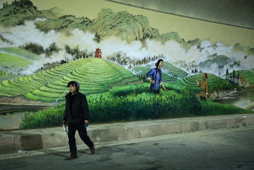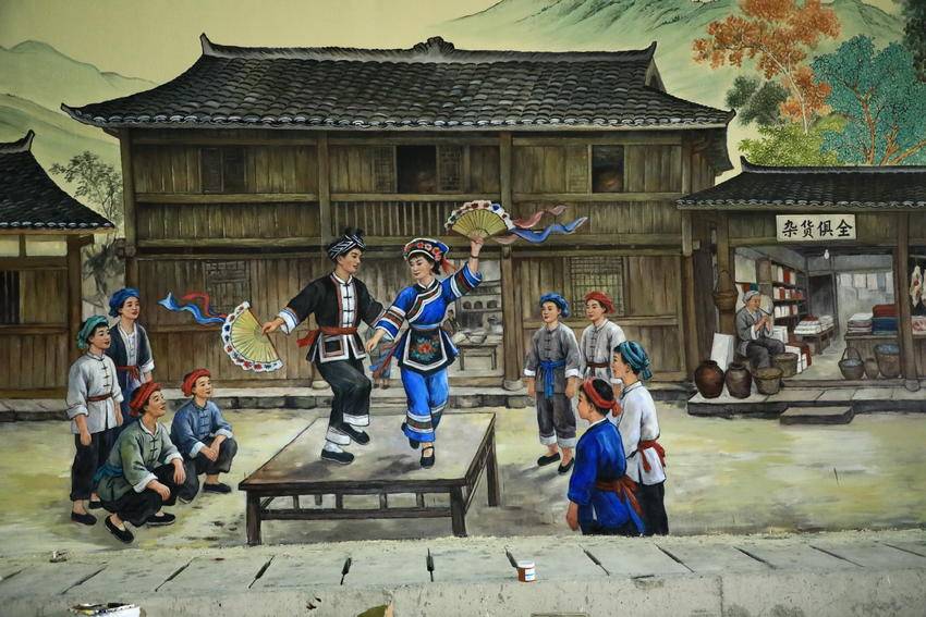 湖北日报客户端讯(通讯员溇水涛声、郑红)1月6日,走进满山红墜道,大型壁画正在绘制中。