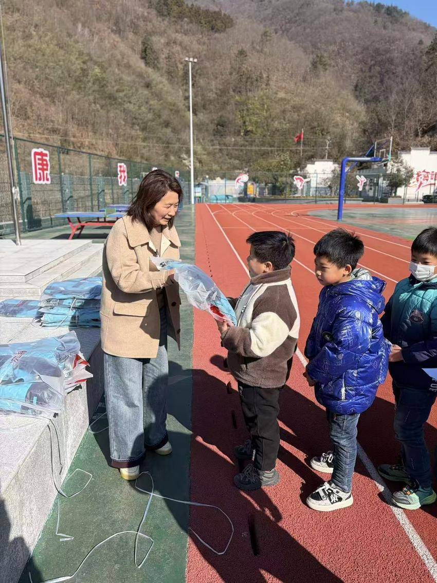 活动现场,捐赠方代表与学校老师依次为孩子们发放崭新的校服。孩子们有序列队,接过包装精美的校服时,脸上洋溢着喜悦与期待。崭新的蓝白校服不仅为冬日的校园增添了亮色,更让山区孩子感受到了来自社会的浓浓暖意。