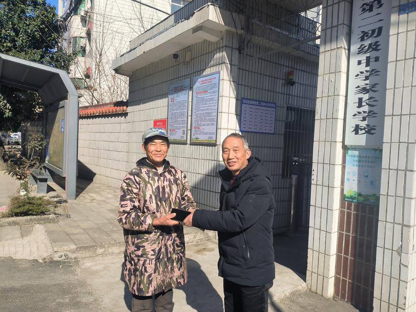 临近中午,居民纪昌国急匆匆赶到快递点,焦急地询问是否有人捡到手机。店主董老板随即联系余勤海,接到消息的余勤海很快带着手机赶到校门口。经核对手机内信息,确认纪昌国就是失主后,便将手机交还。