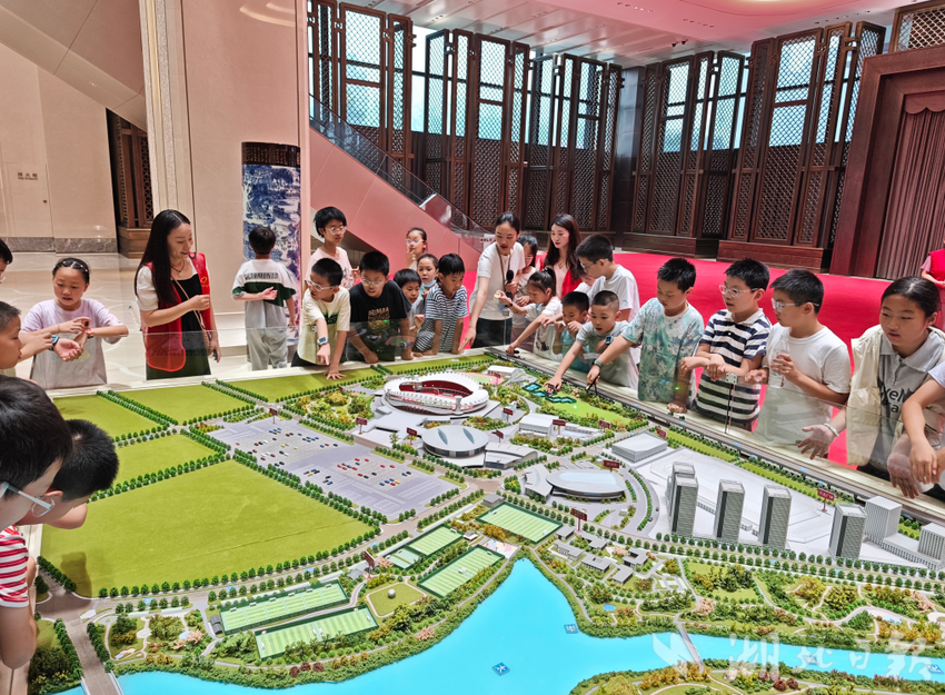 研学最后一站,孩子们踏入军运会礼宾楼,跟随讲解员回溯军运盛会,了解场馆从“赛事核心”到“惠民阵地”的转型。“原来这里见证过世界目光!”青少年们驻足感受城市发展与体育精神传承,这场研学之旅成为强健体魄、厚植精神的“成长课堂”。