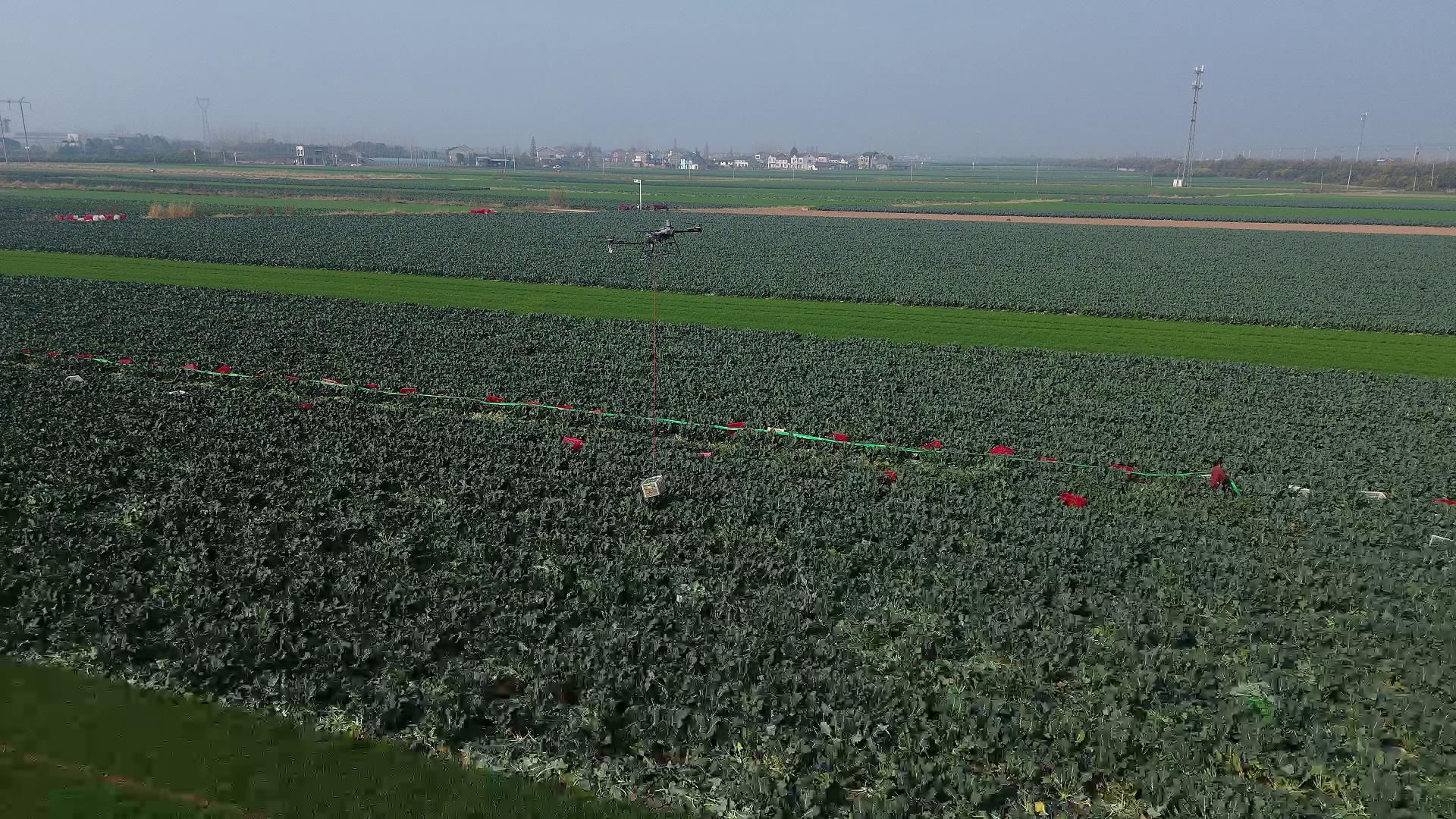 走进勤天蔬菜专业合作社的基地里,两三百亩西兰花和数十亩蒜苗已进入采收高峰期。合作社负责人阮露林正操作无人机进行田间运输。“以前采收西兰花,货车进地会碾压部分菜地,全靠人工搬运则成本高昂、人手难寻。”阮露林说,“现在用无人机,不仅能有效解决采收集中季劳动力紧张的难题,还能降低劳动强度,有效避免车辆对田块和作物的碾压损伤。”