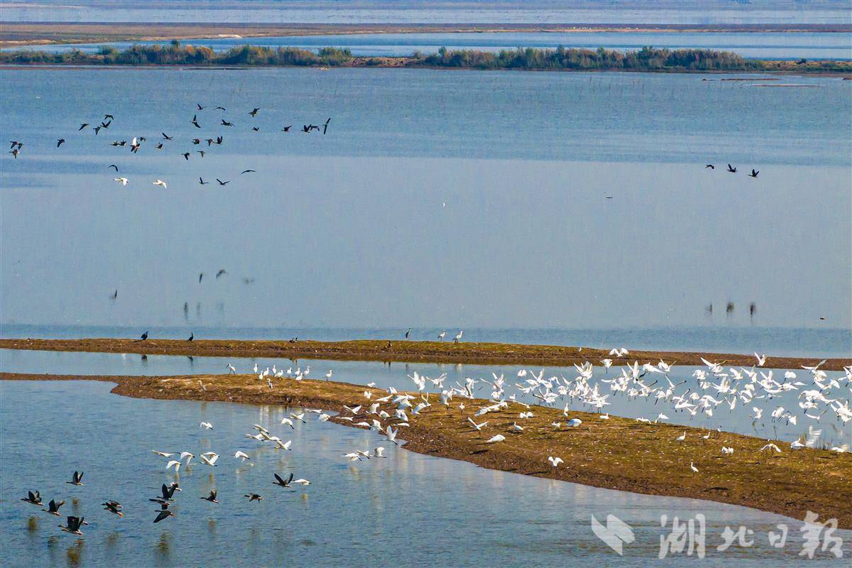 2025年11月30日,湖南岳阳洞庭湖浅水区域变身候鸟的栖息乐园。(湖北日报全媒记者 任勇 摄)
