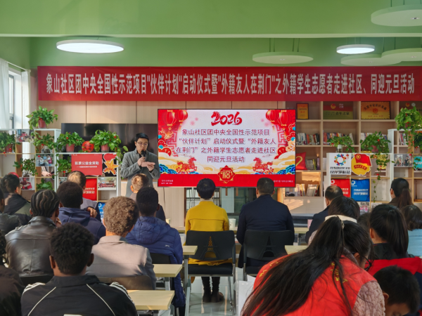 象山社区启动“伙伴计划”并举办元旦联欢会,外籍志愿者与社区儿童齐聚一堂。中外文化才艺展示、剪纸体验等活动精彩纷呈,全场共唱《明天会更好》,传递美好祝愿。