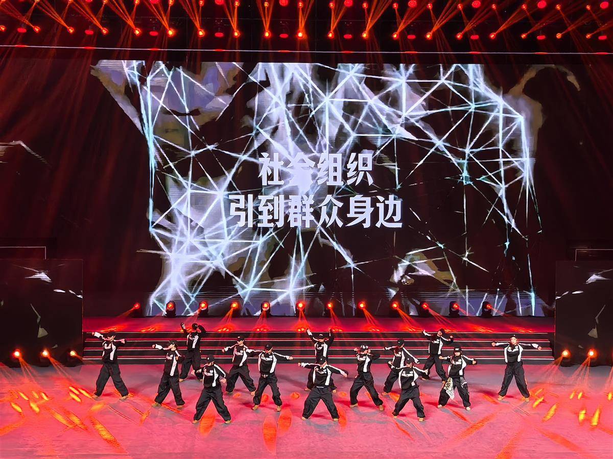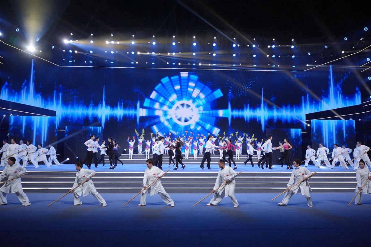 与此同时,柔力球、篮球、手拍鼓、舞龙等体育项目也以艺术化的形式被有机融入表演之中。整场演出通过前沿的舞美设计、创新的艺术构思与现代化的声光电技术,将体育精神、地域文化与时代风貌交织共鸣,为观众呈现出一场视听震撼、意蕴深远的文体盛宴,生动诠释了“孝爱之城”的活力与底蕴。