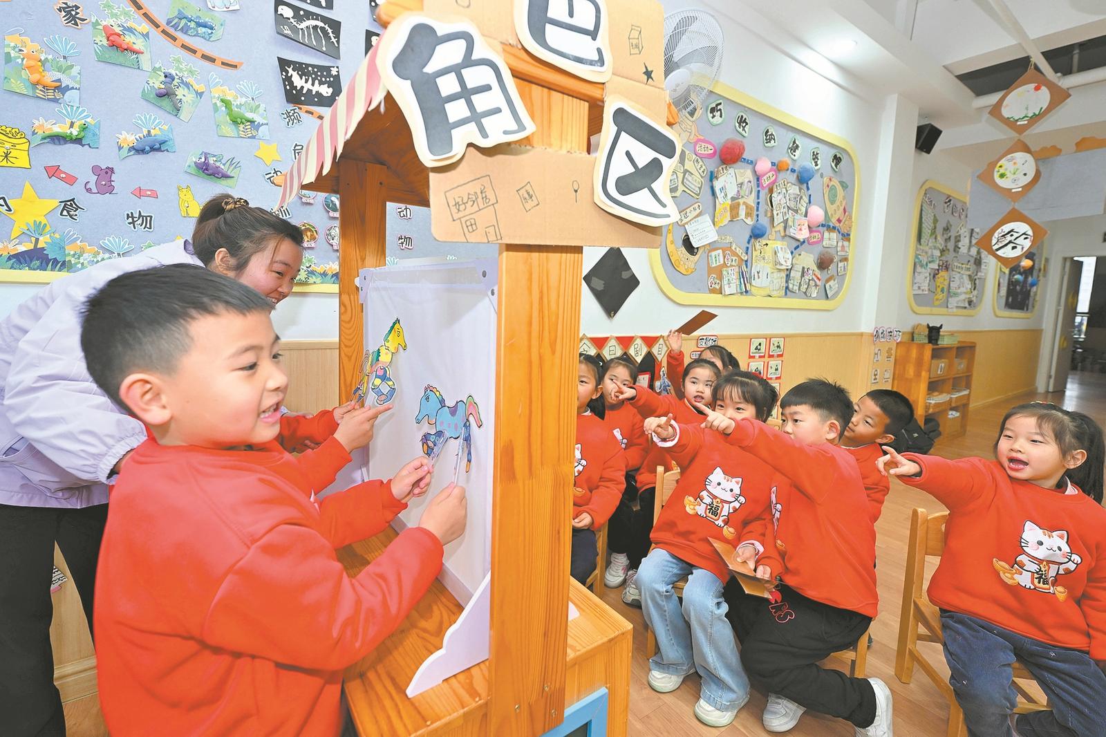 近日,在樊城区樊东教工幼儿园,孩子们在老师的带领下体验皮影戏,近距离感受中华优秀传统文化的魅力。(来源:襄阳日报