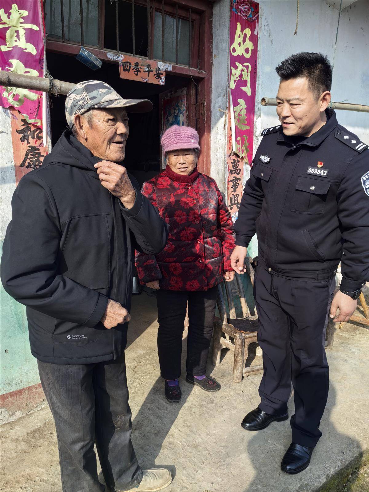 1月8日,冬阳煦暖,襄阳市襄城区卧龙镇西乡村二组村民王永相家门口,襄阳市公安局襄城区分局民警孙毛永和老两口晒着太阳、聊着天。孙毛永和王永相非亲非故,此次是专程为王永相老伴送药,这份“代购工作”他已坚持近4年。