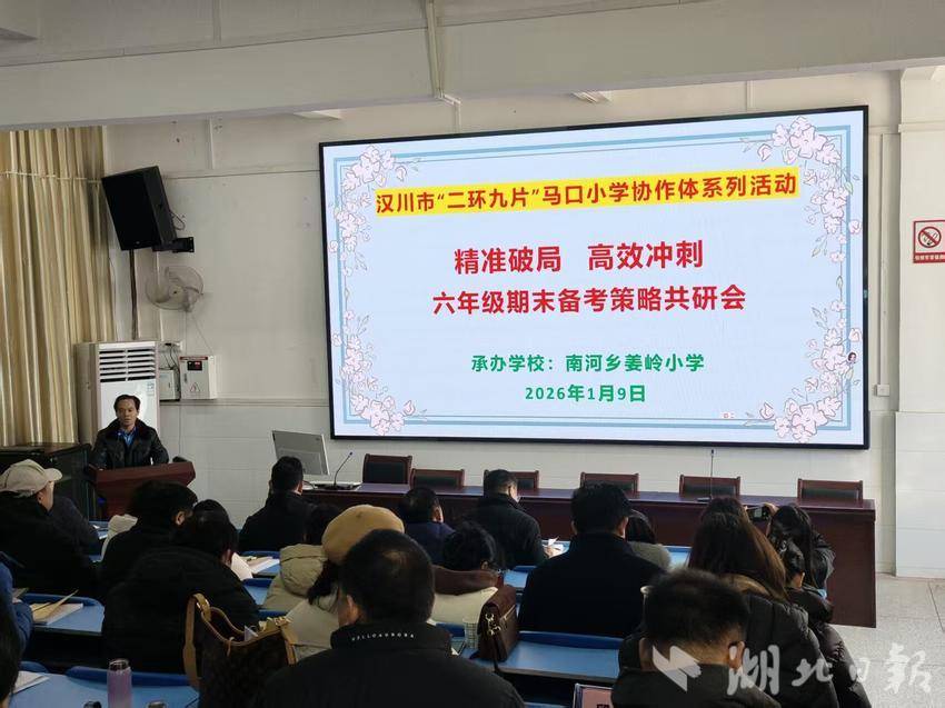 湖北日报客户端讯(通讯员王国兵、雷红艺)1月9日上午,汉川市“二环九片”马口小学协作体六年级期末师生素养展示研讨会在姜岭小学举行,市教育局相关领导、协作体领导及六年级部份教师参与活动。