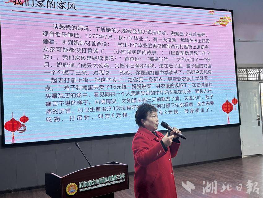 湖北日报客户端讯(通讯员李腊姣、孙彤)1月12日,孝感市“火炬”宣讲团的讲师们走进汉川市仙女山第三小学,为师生们带来了一堂关于“家教、家风、家训”与“习惯养成”的生动课程。市关工委、市教育局及仙女山街道相关领导一同出席了活动。