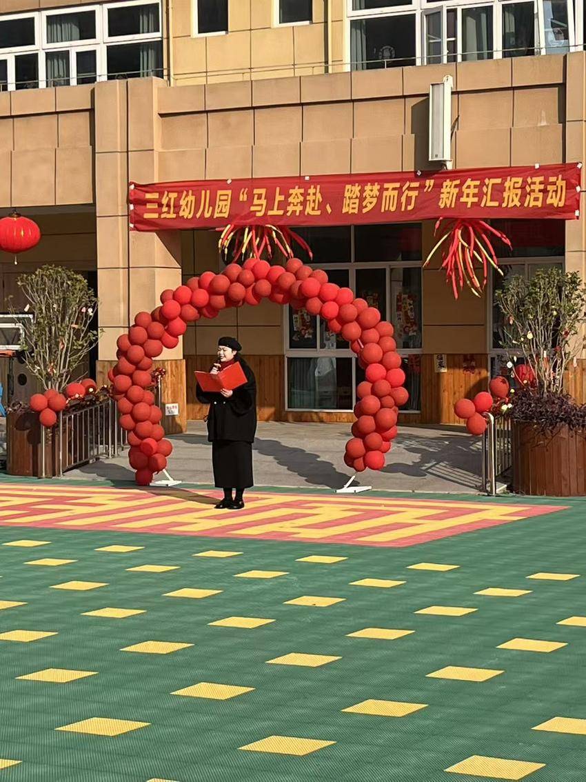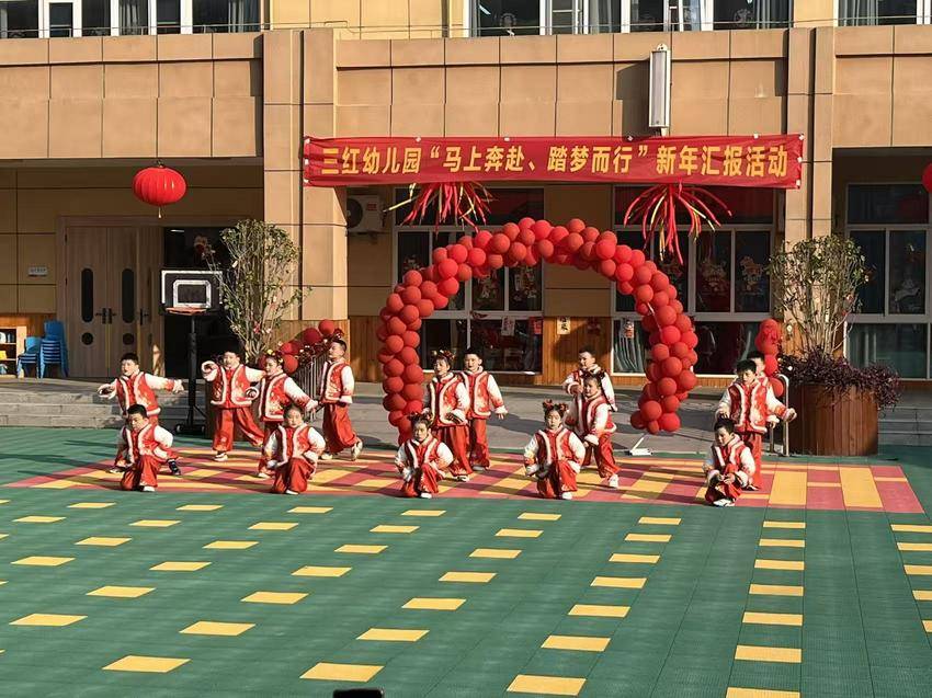 湖北日报客户端讯(通讯员 周璇、乔任飞)红灯笼摇着暖意,红衣裳簇满欢笑,伴着冬日的金色阳光,三红村新时代文明实践站与荆州区第九幼儿园联合主办的“马上奔赴,踏梦而行”新年汇报活动,近日在幼儿园操场热闹启幕——萌娃们以稚嫩的姿态解锁马年新春,让文明实践的温度浸润了整个校园。