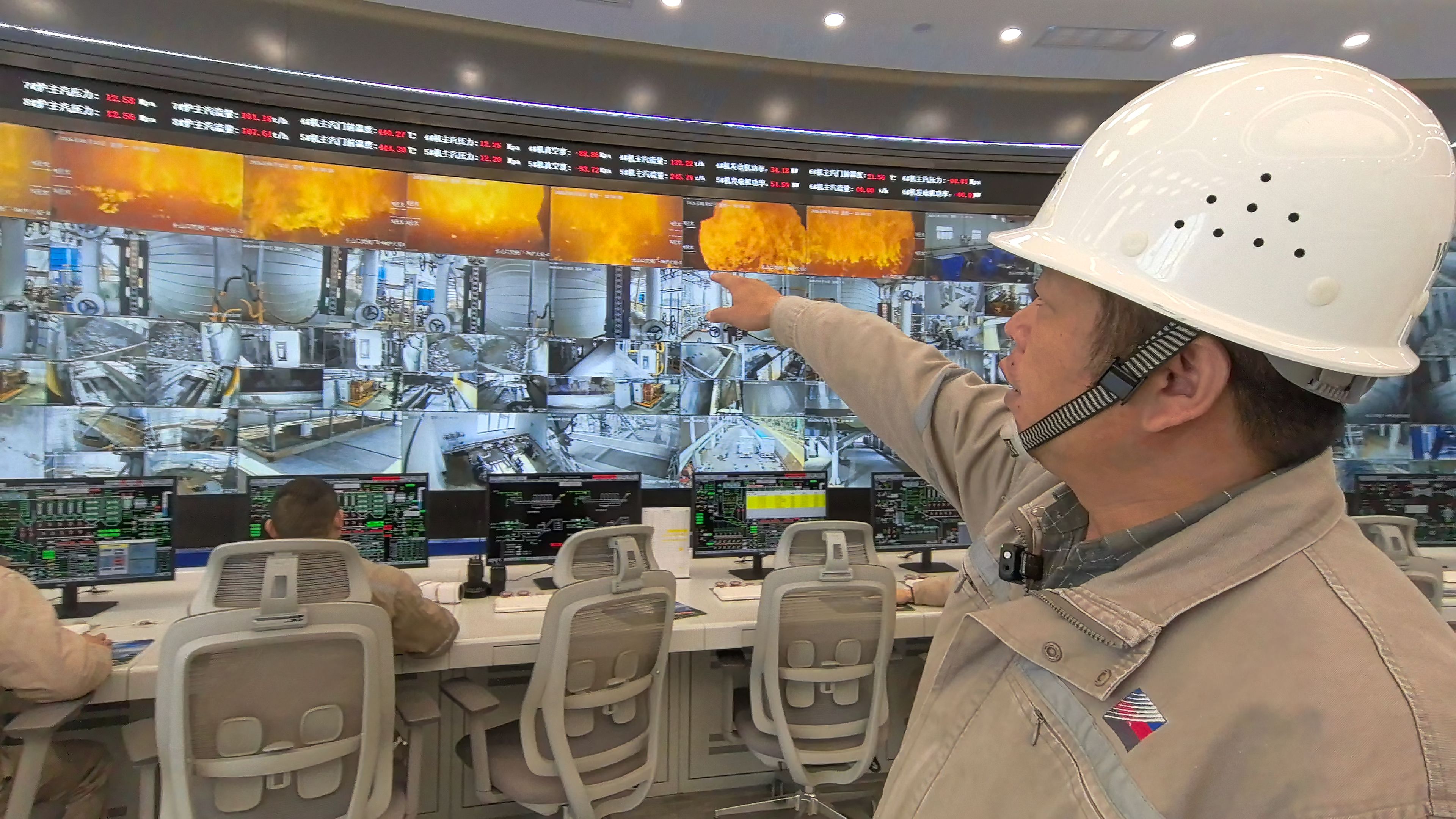 热源从哪来?记者跟随一辆移动供热车,来到附近长山口垃圾焚烧发电厂。中控室内大屏实时显示:八个焚烧炉内烈火翻腾,每天数千吨生活垃圾被焚烧后产生大量高温蒸汽,通过传统管道外输,剩余的被引至厂区集热站。