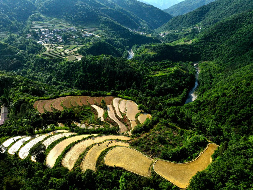 作品:《高山泉水秧田》,作者:何富芝