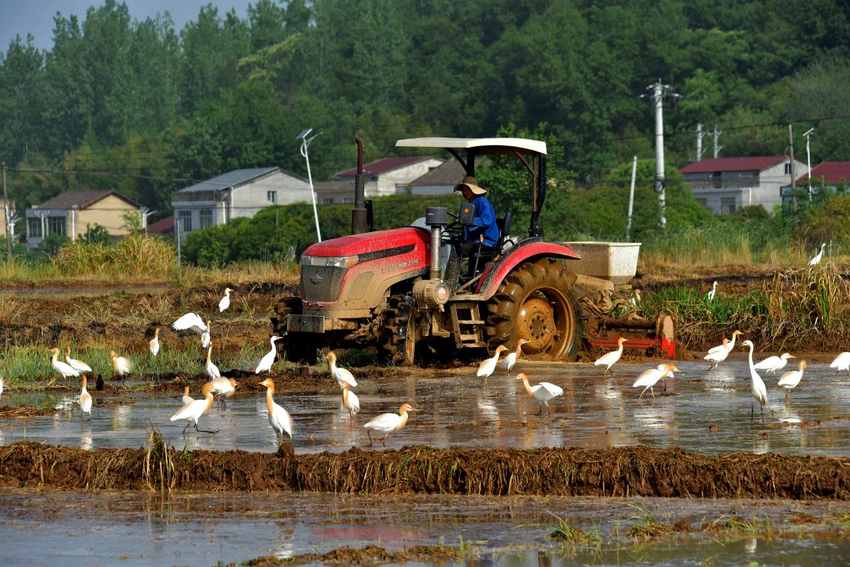 作品:《白鹭追犁入画来》,作者:蔡以成